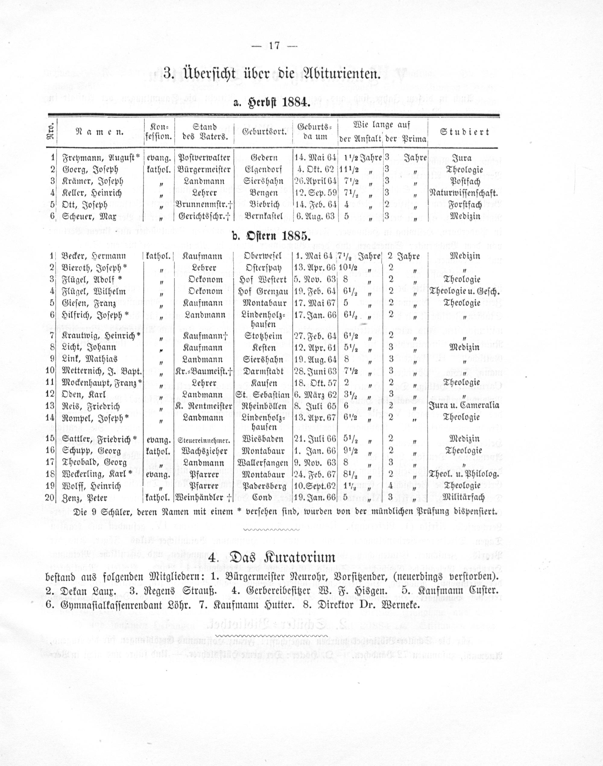 — 17— 3. Überſicht über die Abiturienten. a. Herbſt 1884.