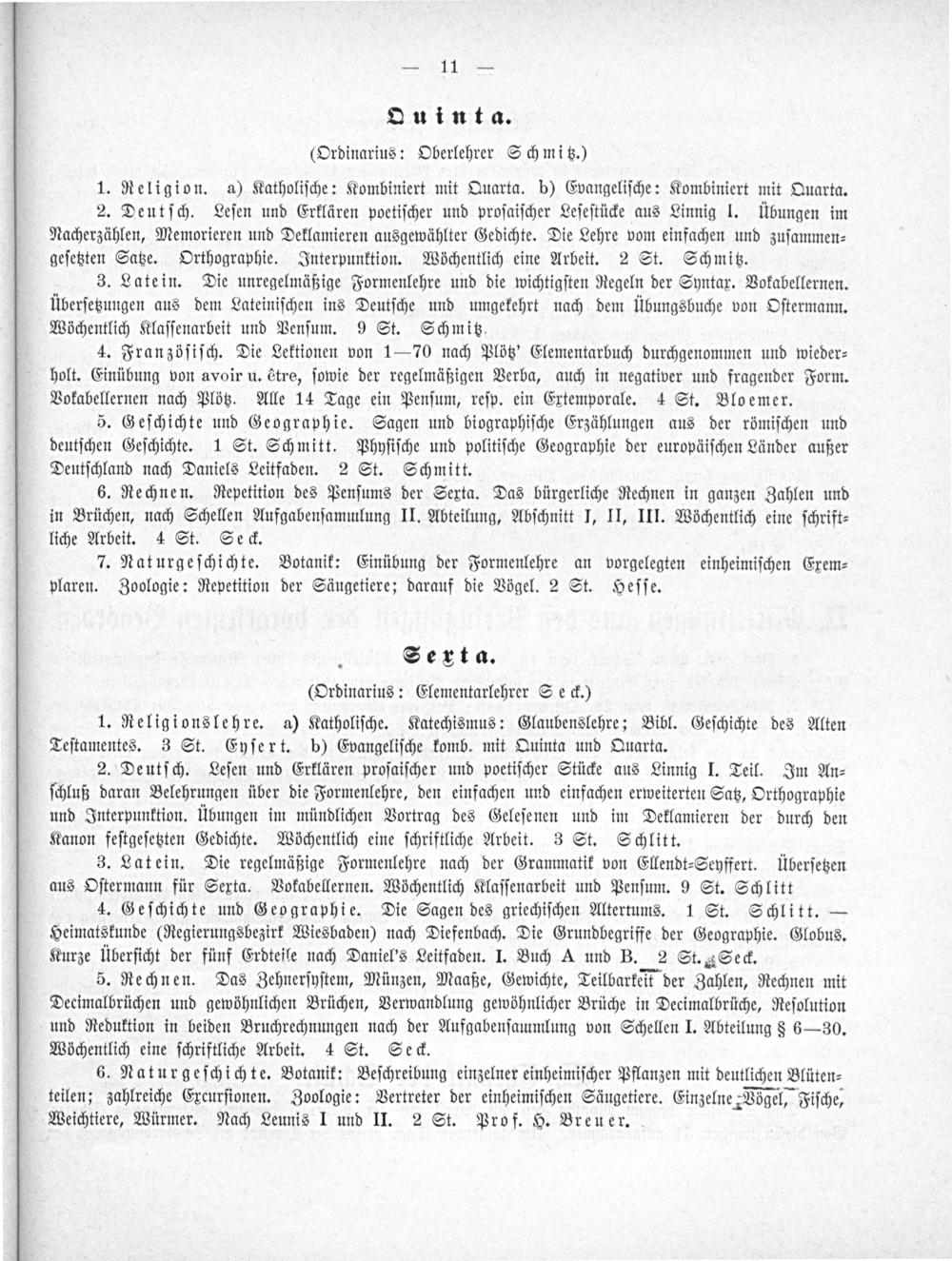 Ouinta. (Ordinarius: Oberlehrer Schmitz.)