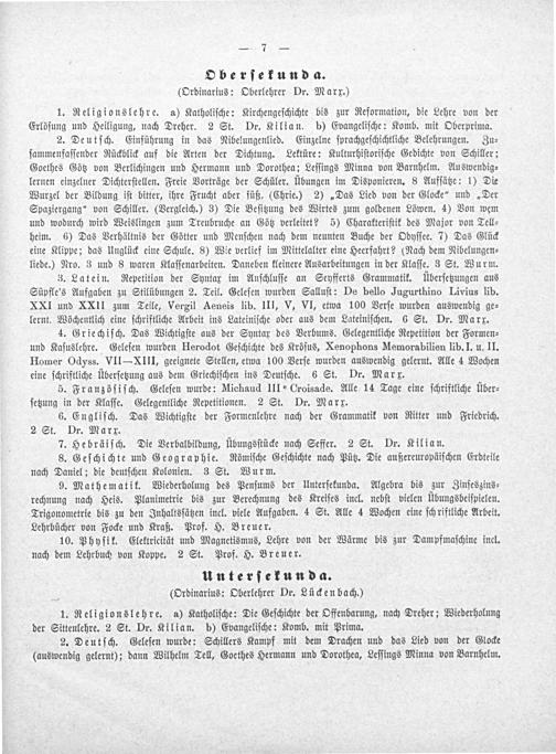 Unterſekunda. (Ordinarius: Oberlehrer Dr. Lückenbach.)