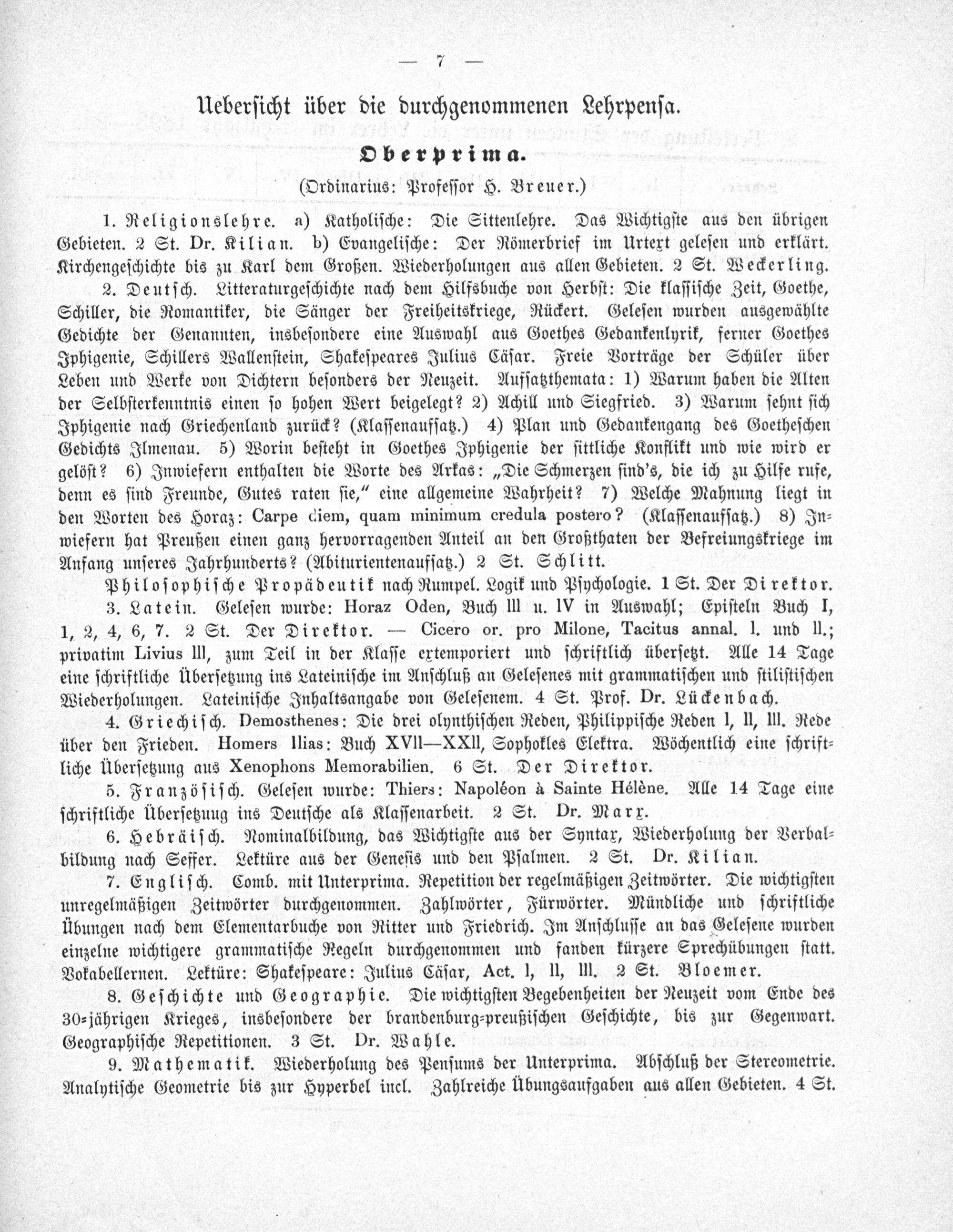 Oberprima. (Ordinarius: Profeſſor H. Breuer.)