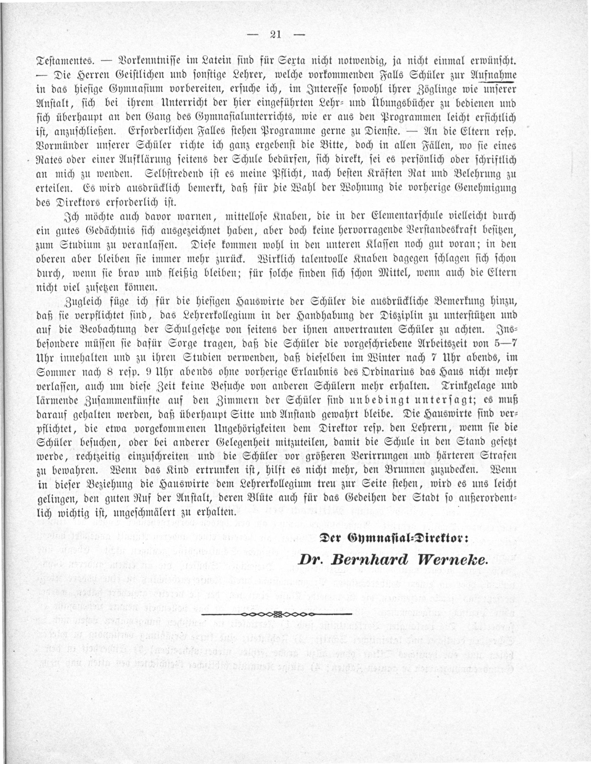 Der Gymnaſial⸗Direktor: Dr. Bernhard Wernefce.