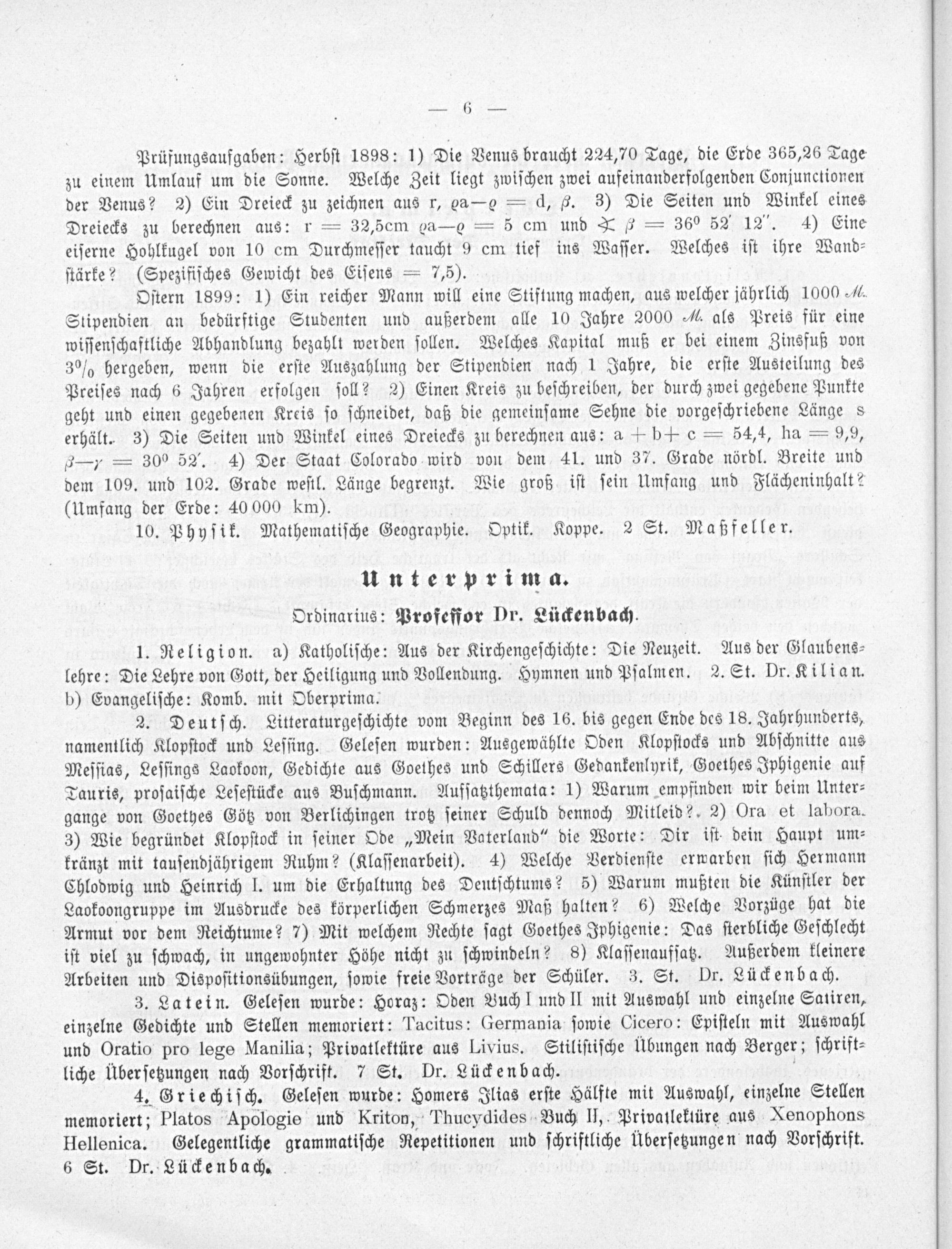 Unterprima. Ordinarius: Profeffor Dr. Lückenbach.