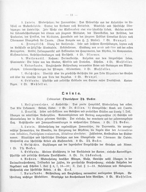 Quinta. Ordinarius: Oberlehrer Th. Becker.