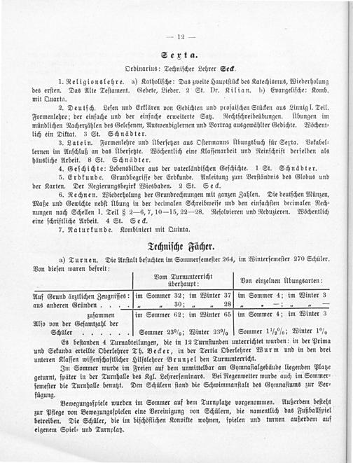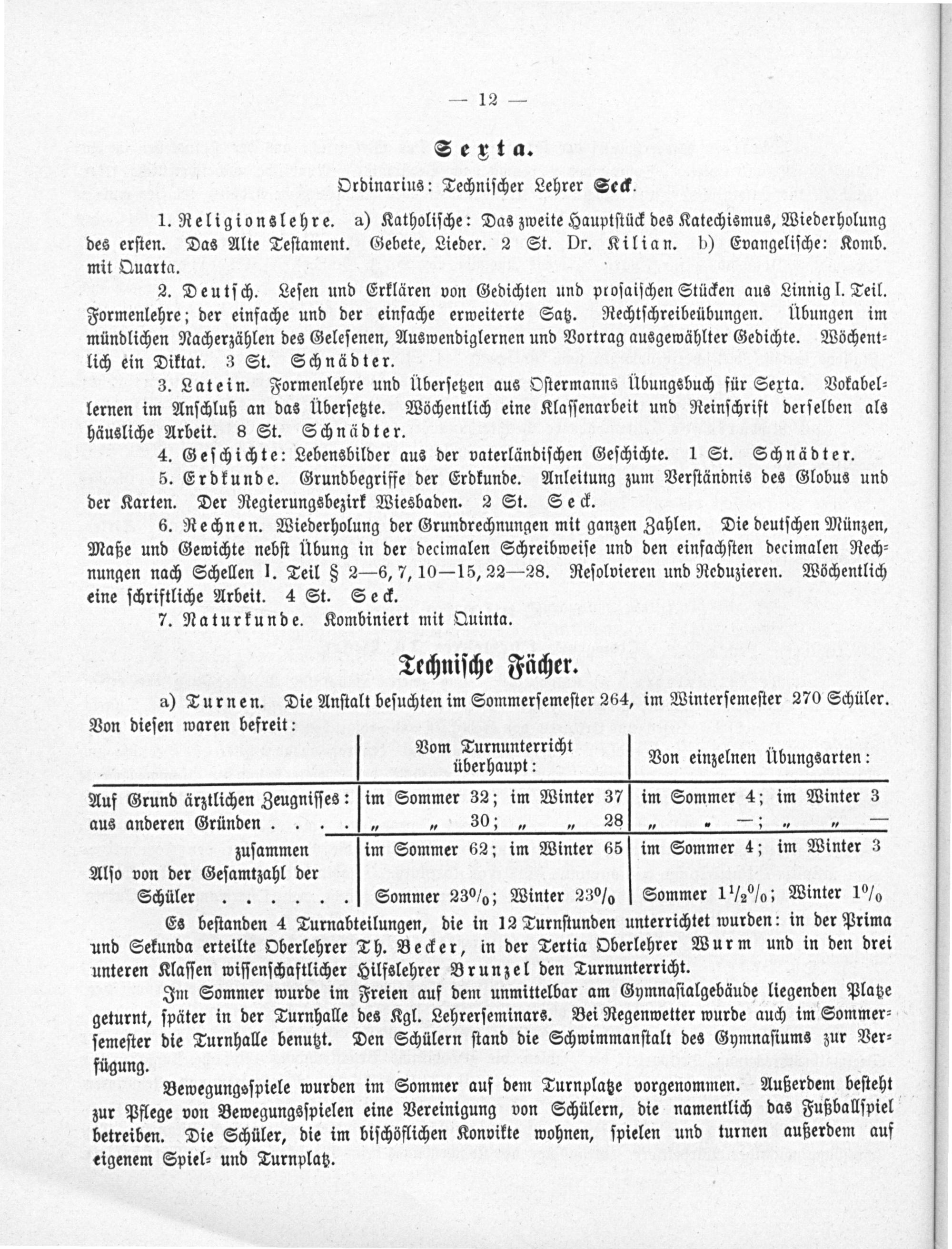 Serta. Ordinarius: Techniſcher Lehrer Seck.