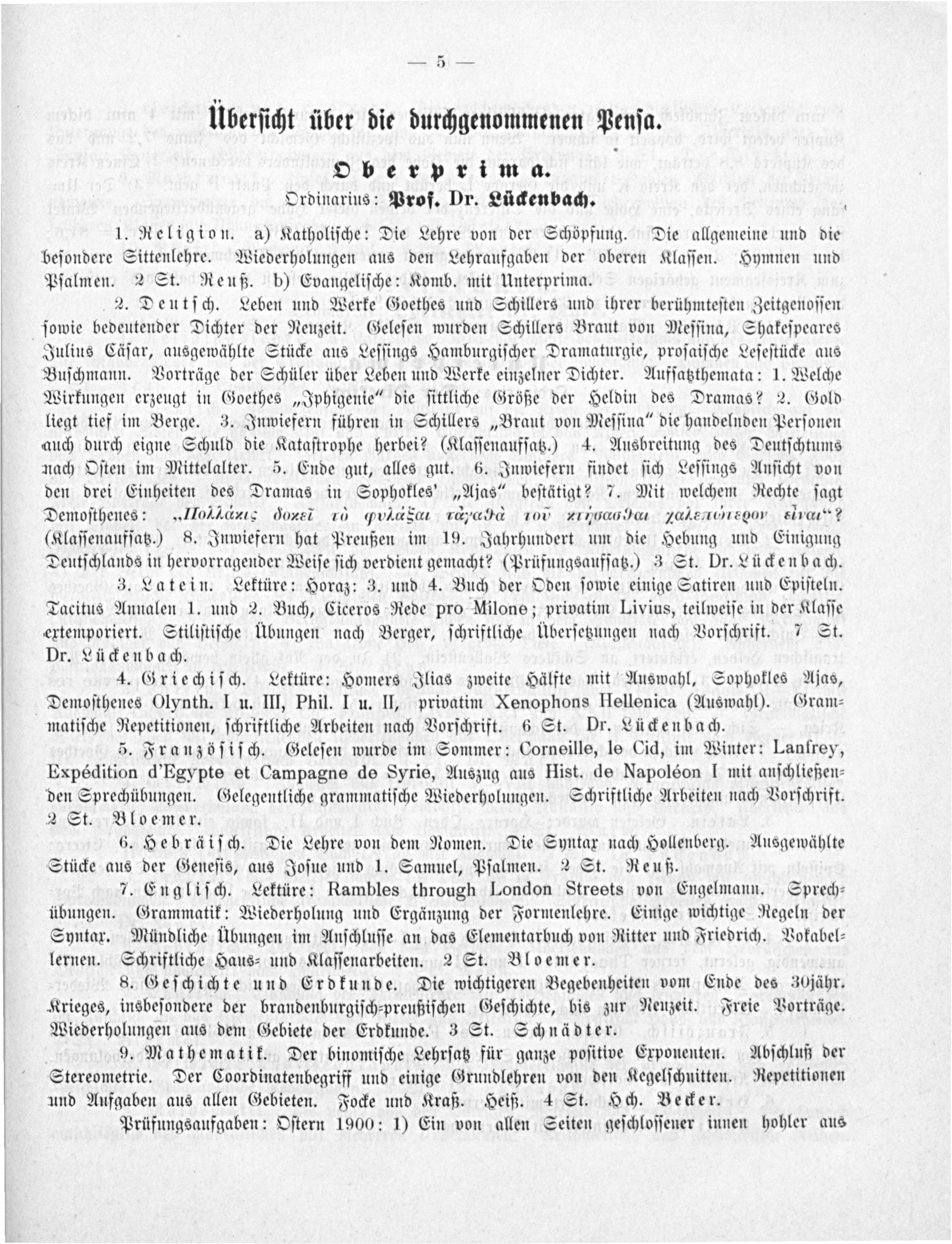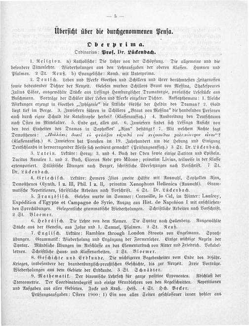 Oberprima. Ordinarius: Prof. Dr. Lückenbach.
