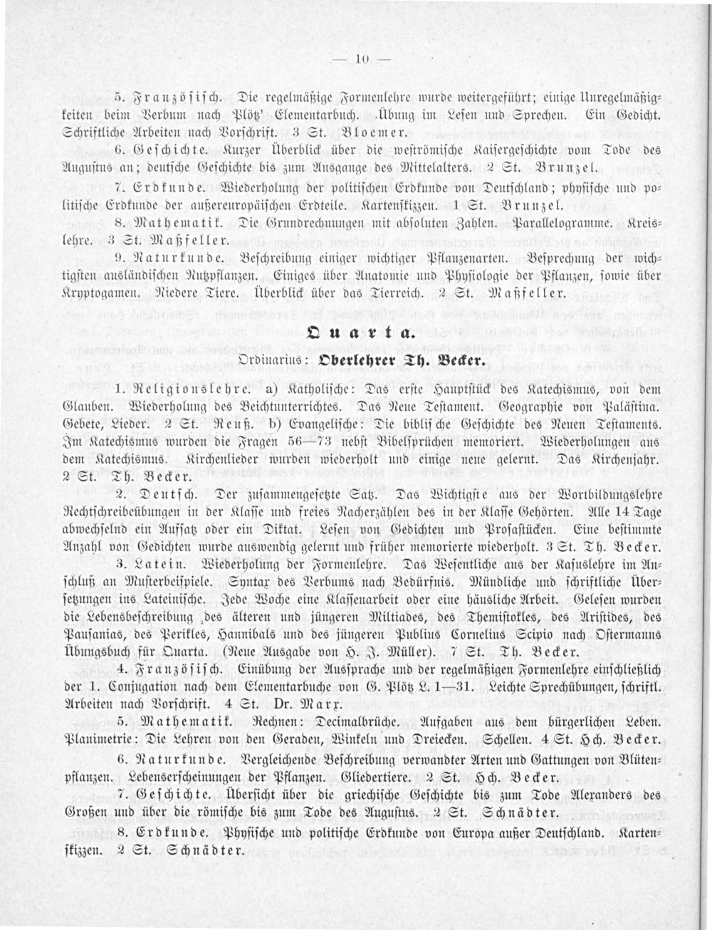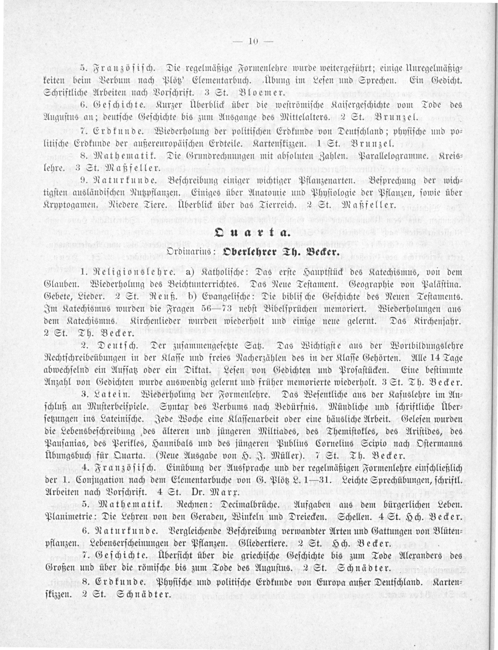 OQuarta. Ordinarius: Oberlehrer Th. Becker.