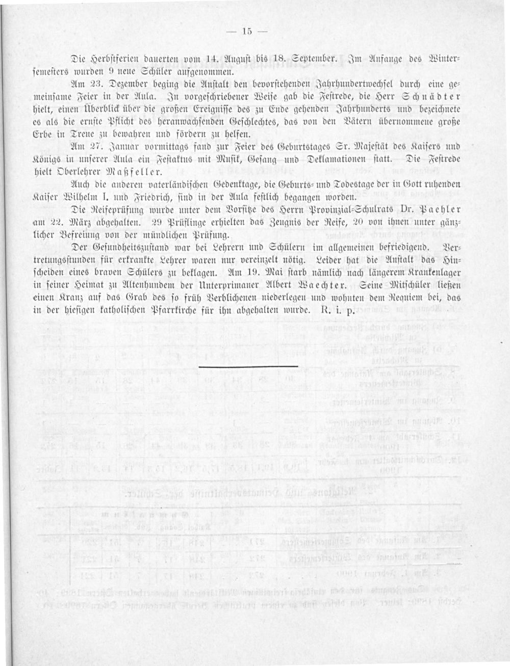Die Herbſtferien dauerten vom 14. Auguſt bis 18. September. Im Anfange des Winter⸗ ſemeſters wurden 9 neue Schüler aufgenommen.