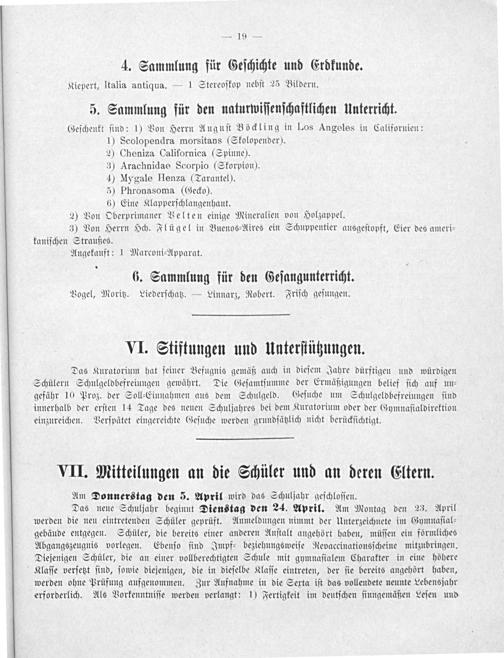 VII. Mitteilungen an die Schüler und an deren Eltern.