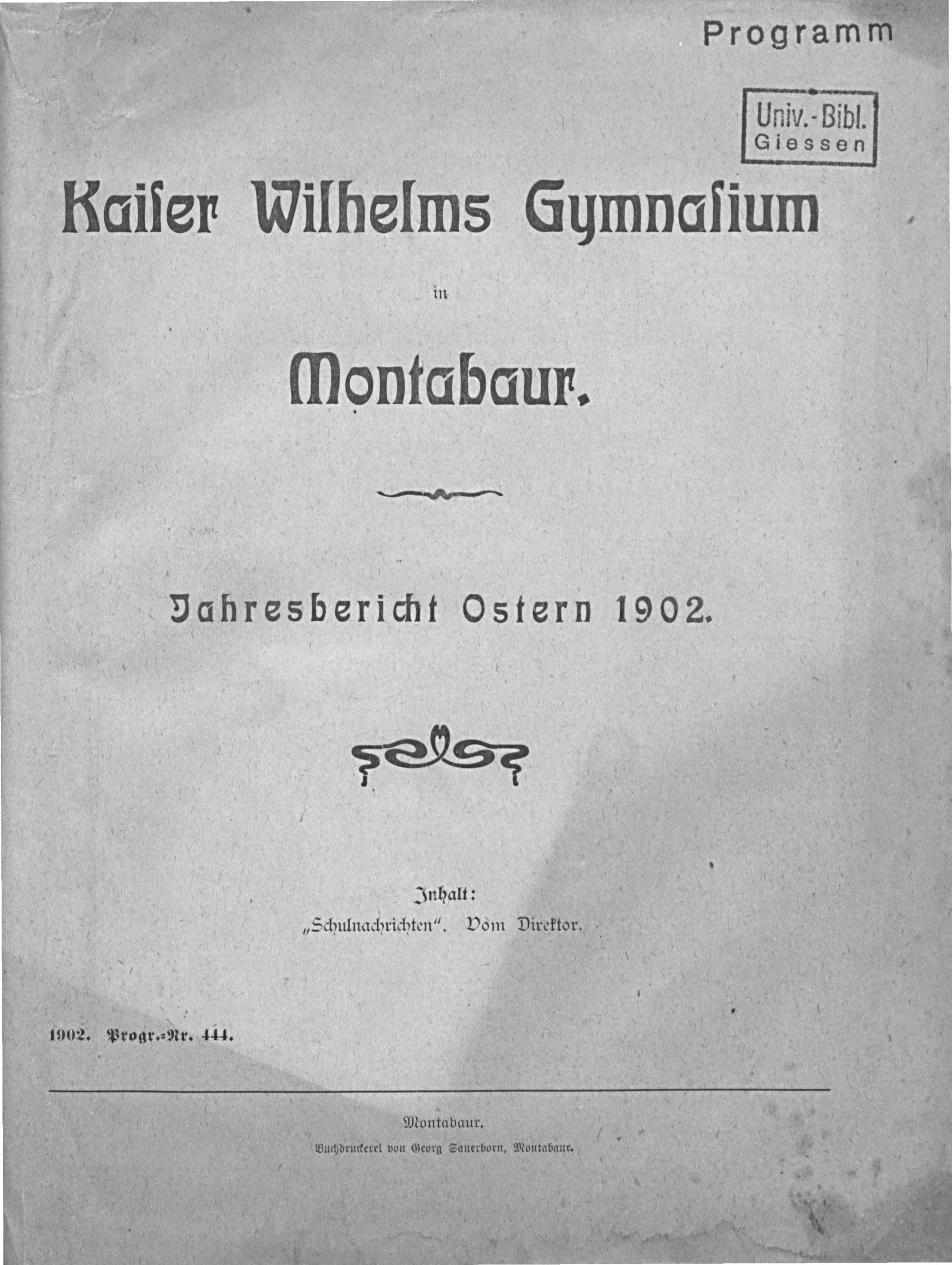 Die ersten 25 Jahre des Kaiser Wilhelms Gymnasiums zu Montabaur