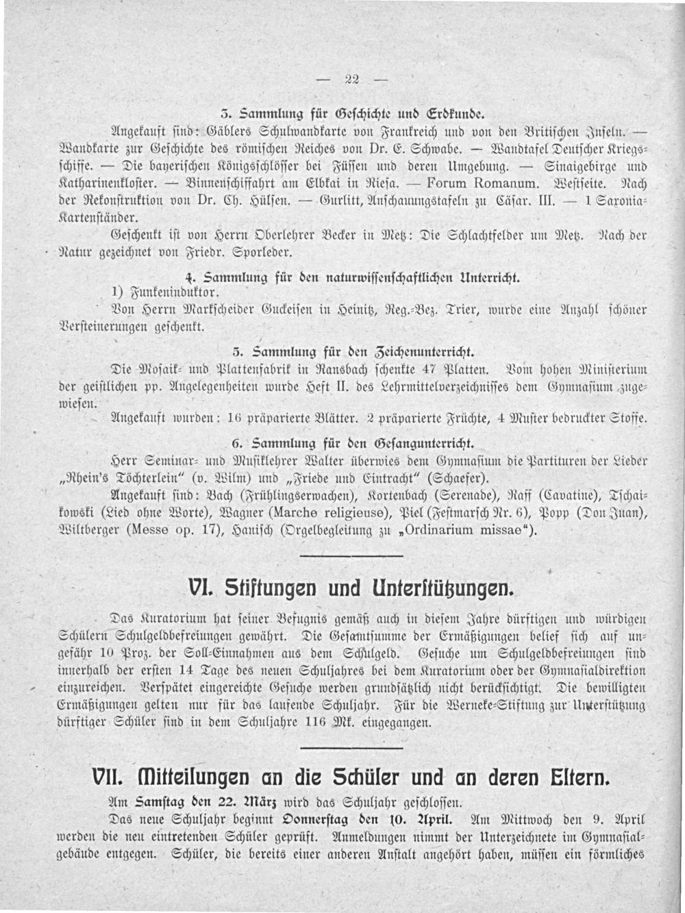 VIl.(Tlitteilungen an die Schüler und an deren Eltern.