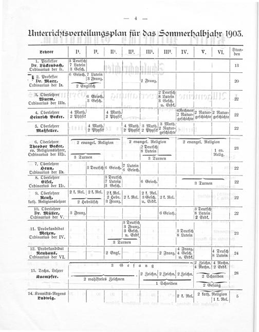 6. Oberlehrer Theodor Becker, ev. Religionslehrer, Ordinarius der IIII.