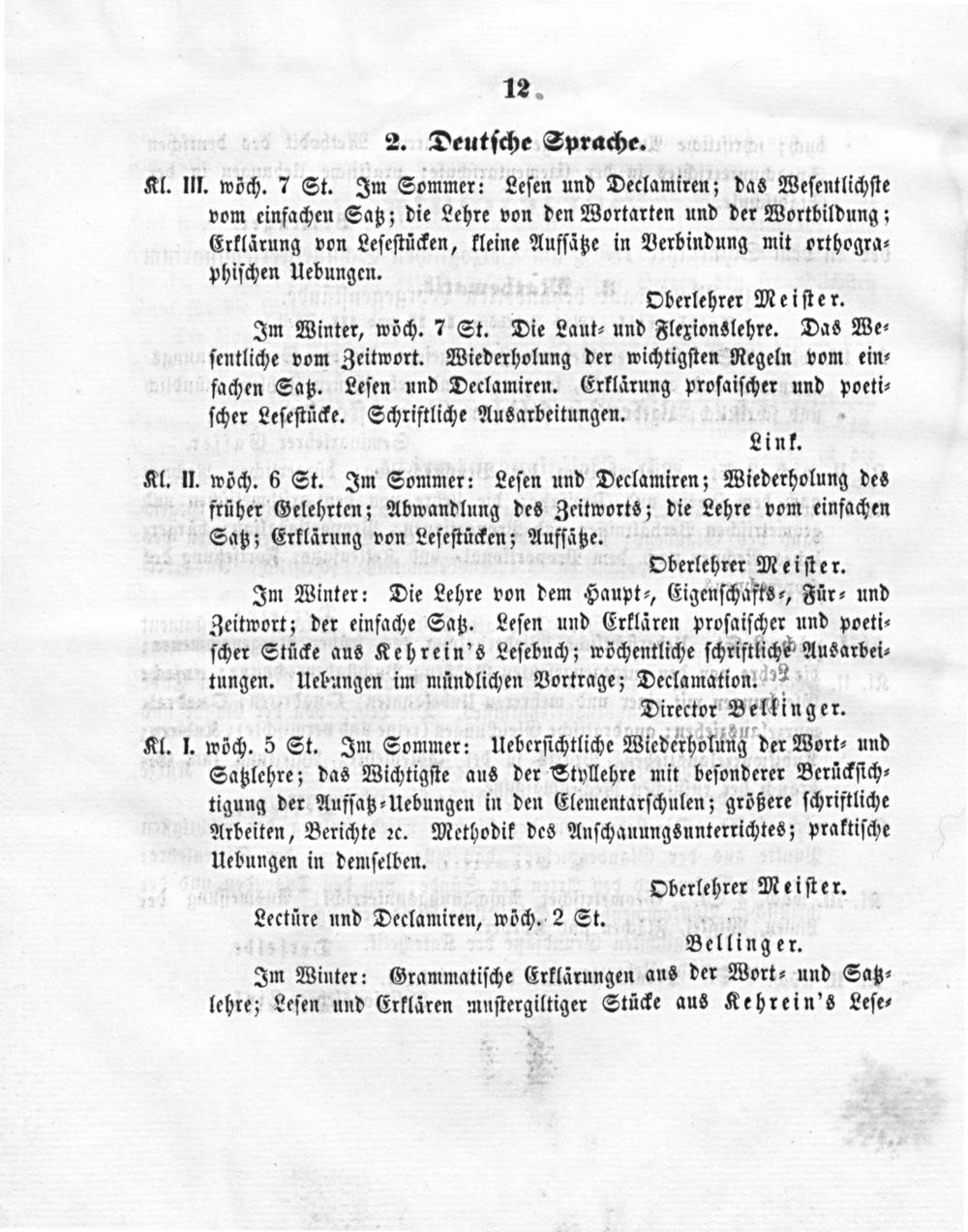 Lectüre und Declamiren, wöch. 2 St.: Bellinger.