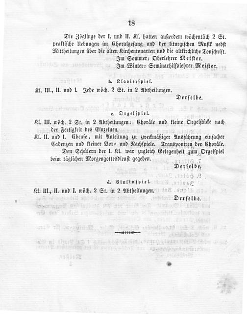 Die Zöglinge der I. und II. Kl. hatten außerdem wöchentlich 2 St. praktiſche Uebungen im Choralgeſang und der liturgiſchen Muſik nebſt Mittheilungen über die alten Kirchentonarten und die altkirchliche Tonſchrift.