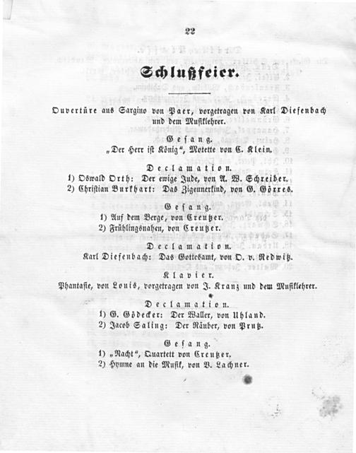 Declamation. 1) Oswald Orth: Der ewige Jude, von A. W. Schreiber. 2) Chriſtian Burkhart: Das Zigeunerkind, von G. Görres.