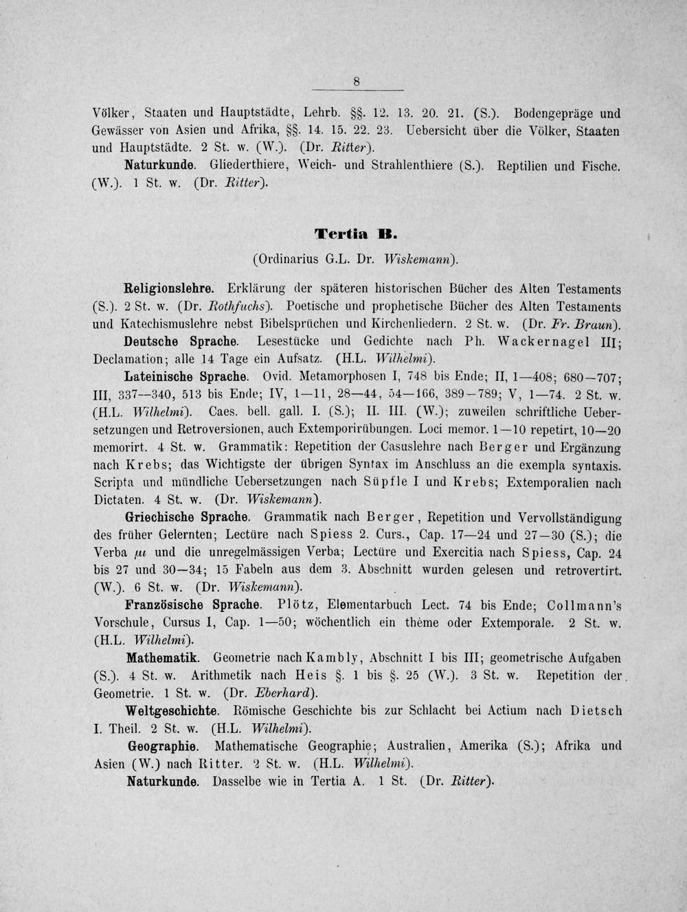 Tertia B. (Ordinarius G. L. Dr. Wiskemann).
