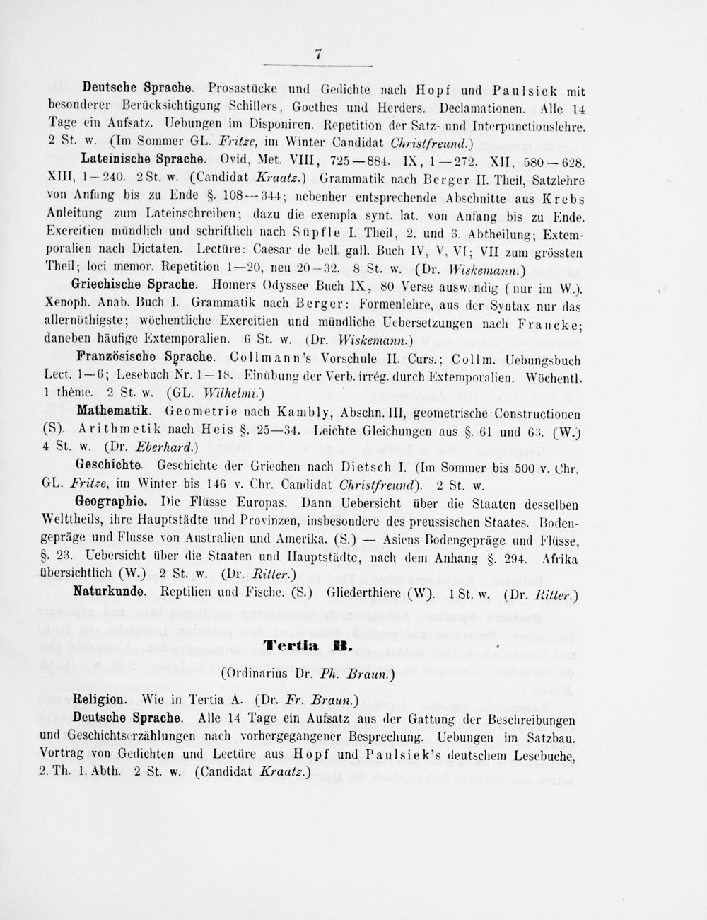 Tertia B. (Ordinarius Dr. Ph. Braun.)