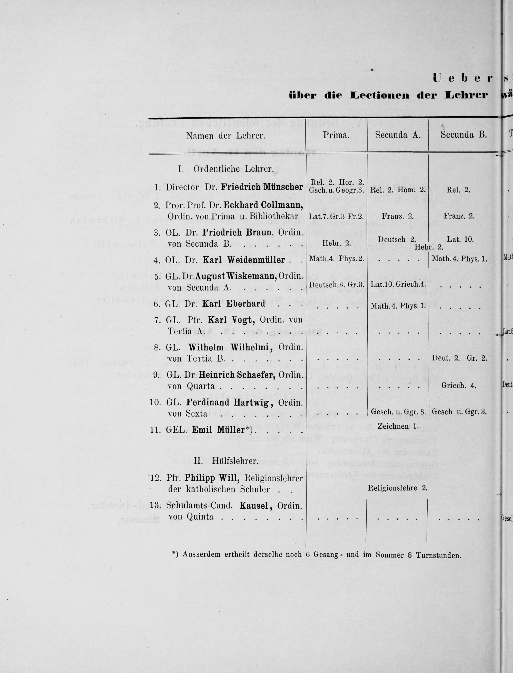 *) Ausserdem ertheilt derselbe noch 6 Gesang- und im Sommer 8 Turnstunden.