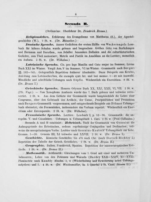 sSecunda B. (Ordinarius: Oberlehrer Dr. Friedrich Braun.)