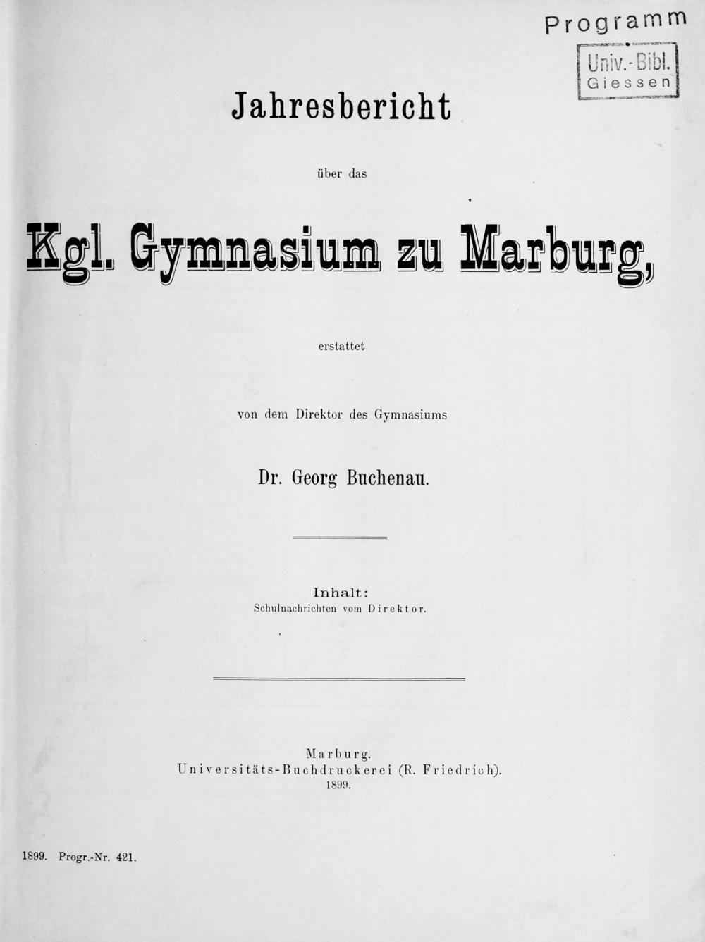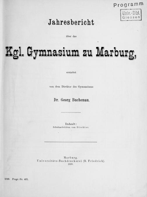 Marburg. Universitäts-Buchdruckerei(R. Friedric h). 1899.