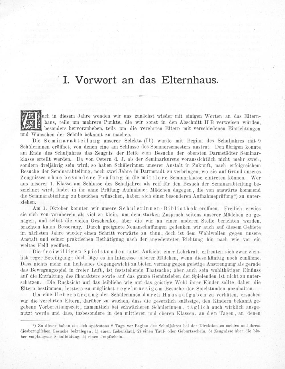 2* hans, teils um mehrere Punkte, die wir sonst in den Abschnitt II B verweisen würden, desonders hervorzuheben, teils um die verehrten Eltern mit verschiedenen Pinriehtungen und Wünschen der Schule bekannt zu machen.