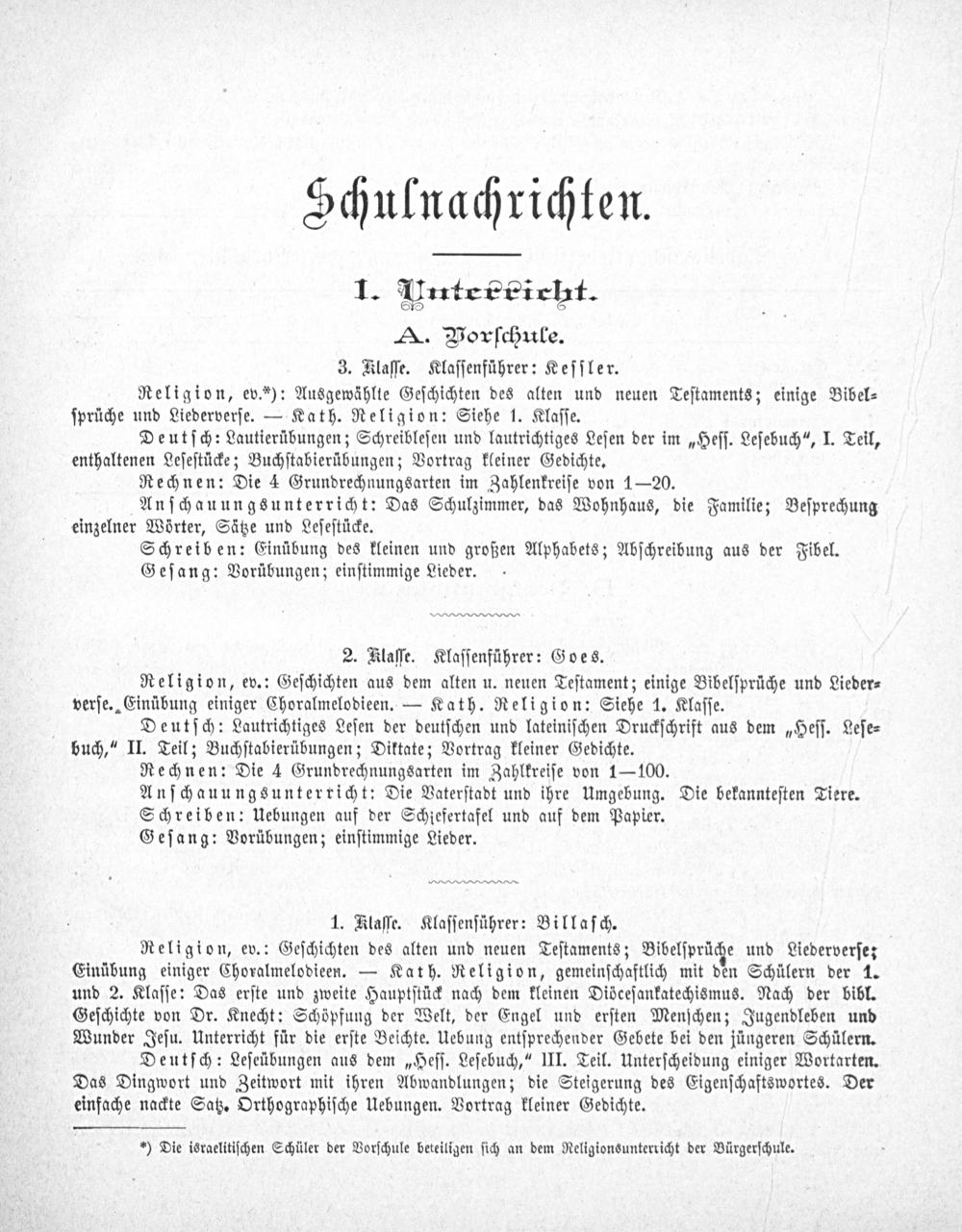 *) Die israelitiſchen Schüler der Vorſchule beteiligen ſich an dem Religionsunterricht der Bürgerſchule.