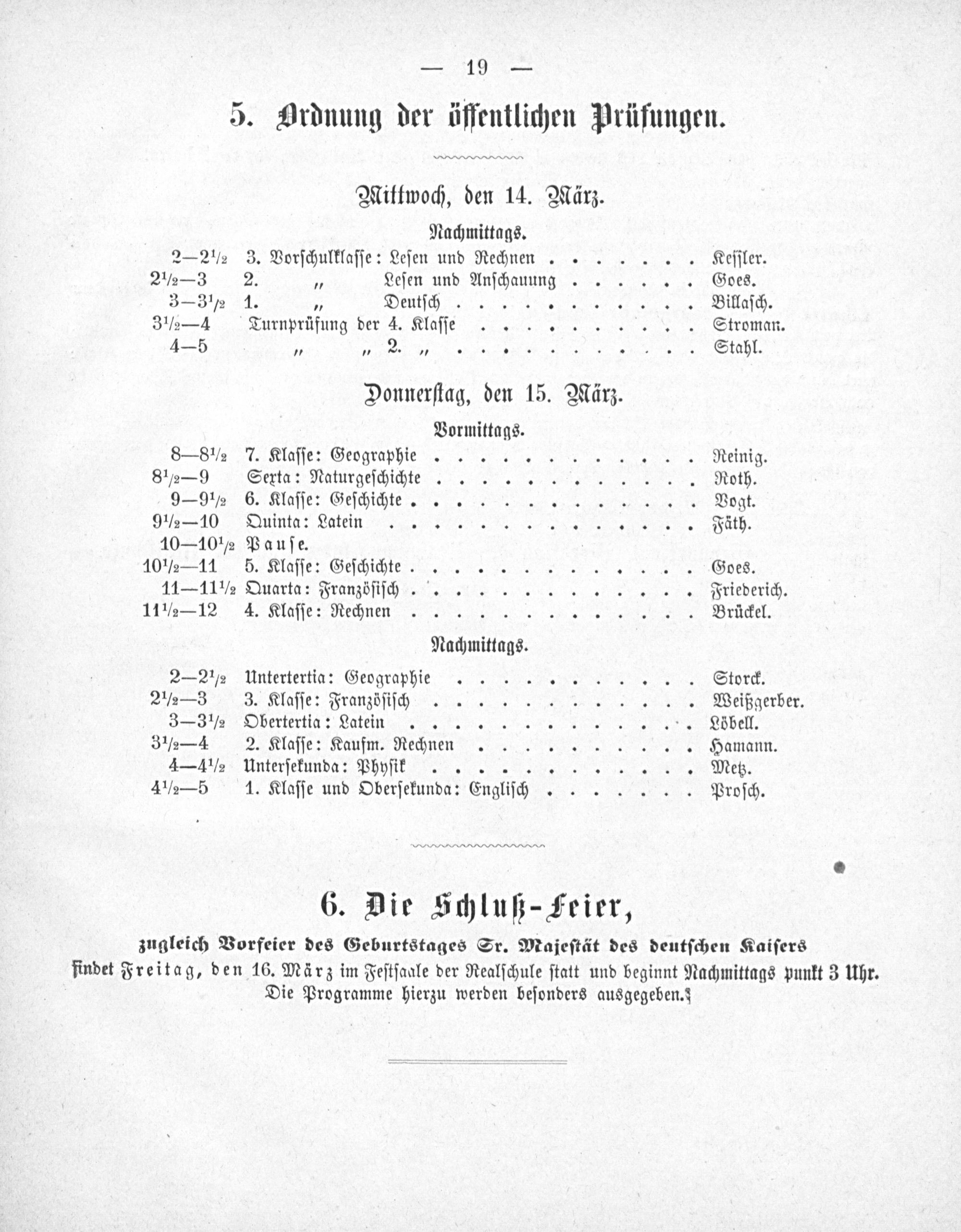 6. Die Schluß-Feier, zugleich Vorfeier des Geburtstages Sr. Majeſtät des deutſchen Kaiſers