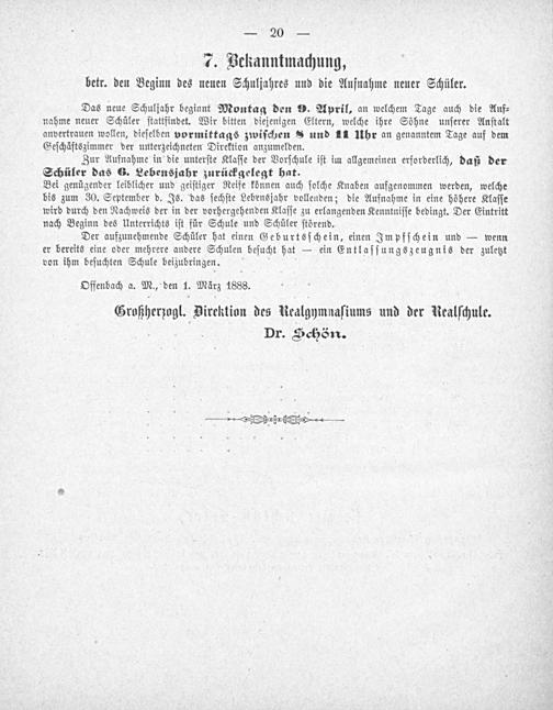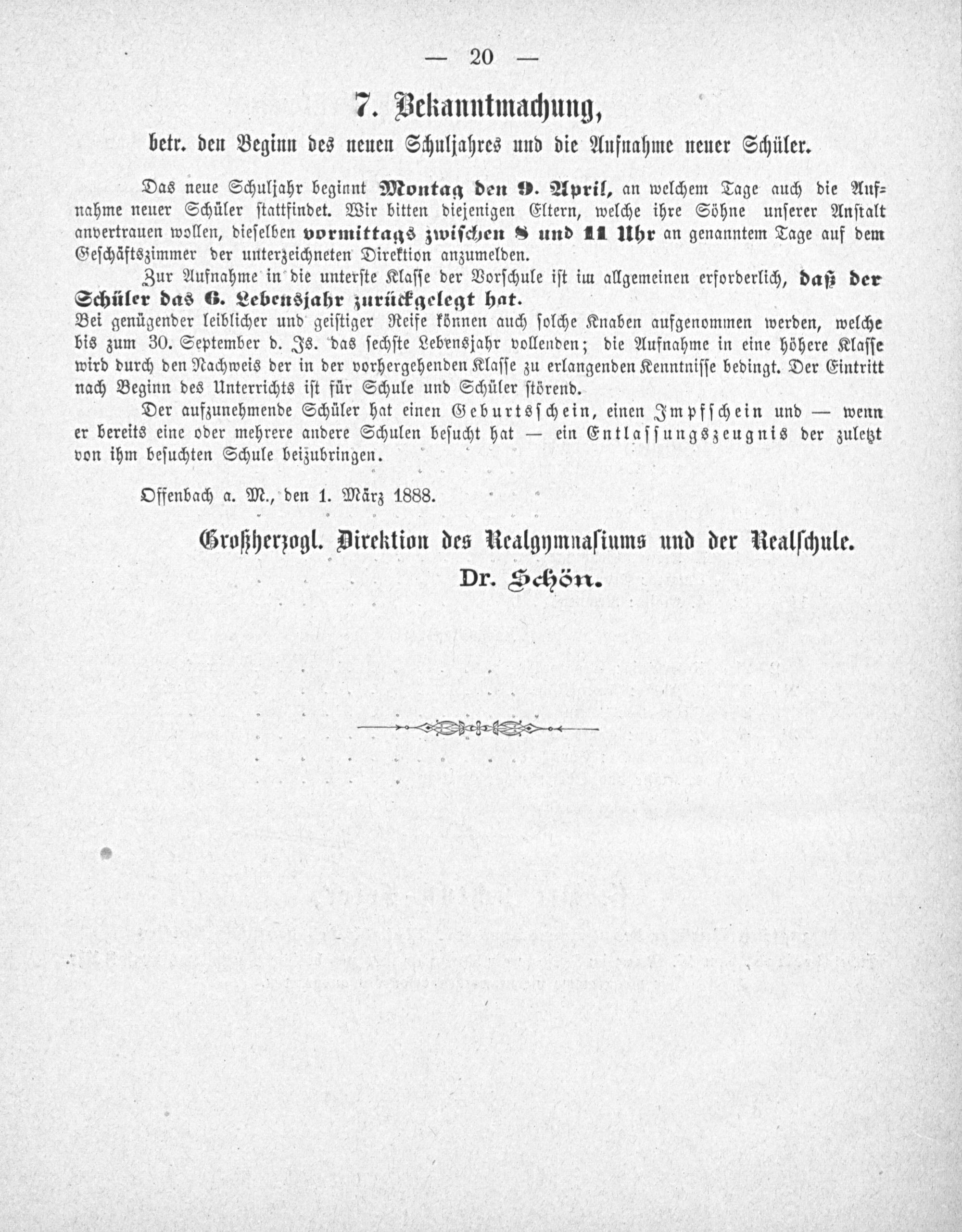 betr. den Beginn des neuen Schuljahres und die Aufnahme neuer Schüler.