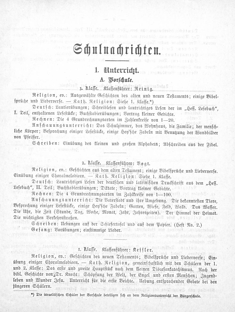 *) Die israelitiſchen Schüler der Vorſchule beteiligen ſich an dem Religionsunterricht der Bürgerſchule.