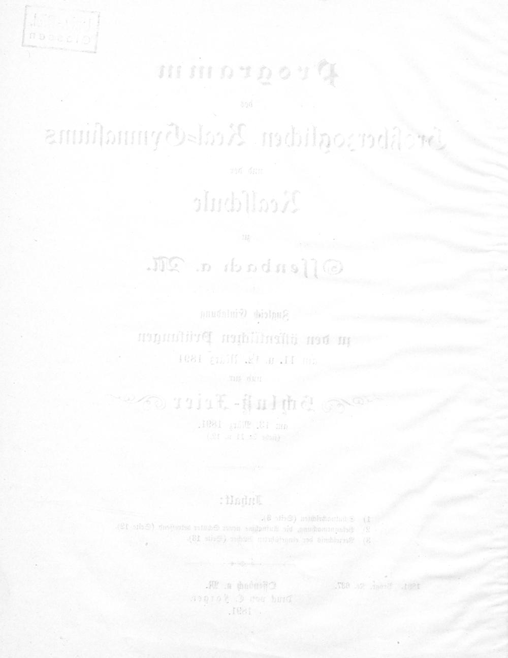 Programm des Grossherzoglichen Realgymnasiums und der Realschule zu Offenbach a. M.