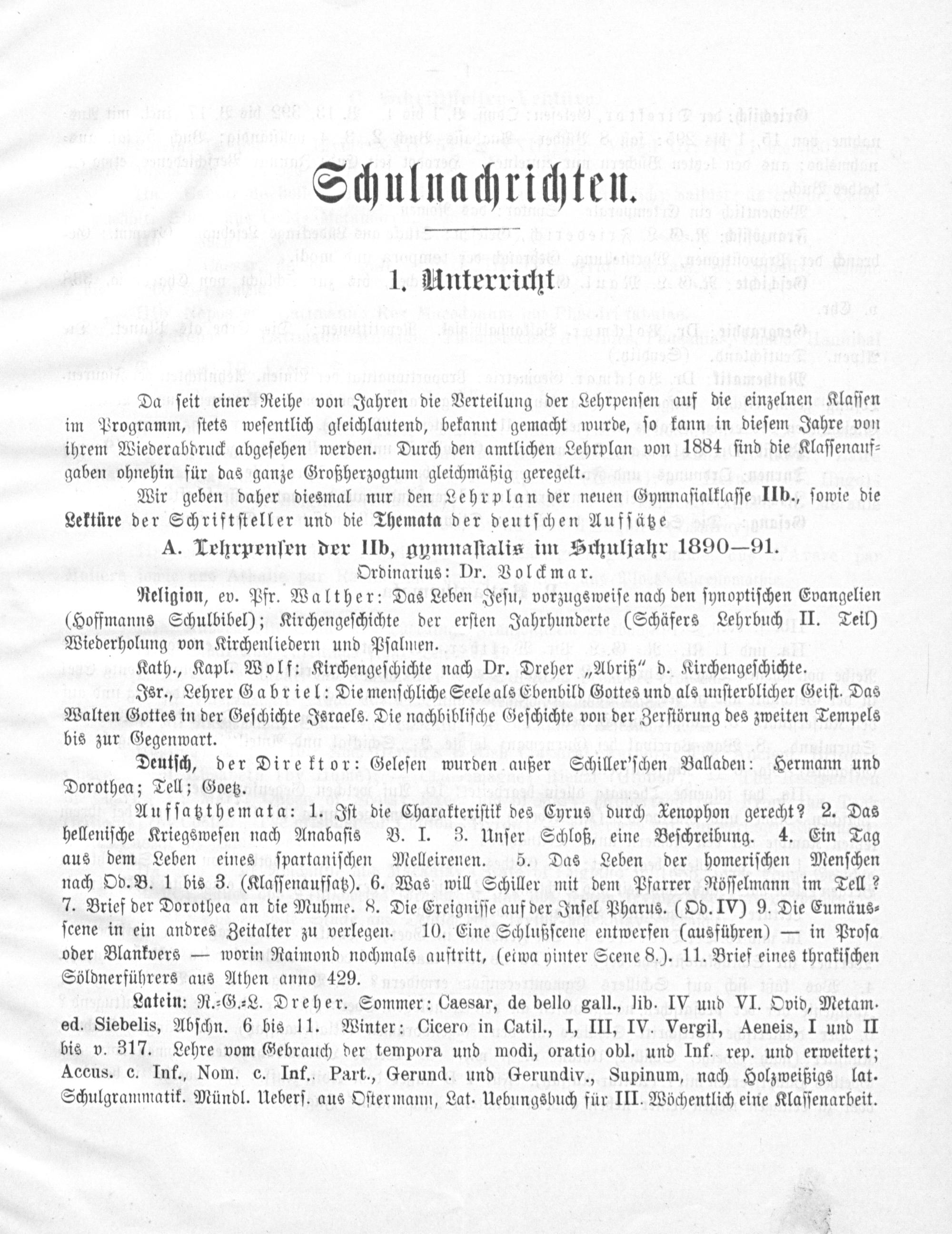 Wir geben daher diesmal nur den Lehrplan der neuen Gymnaſialklaſſe IIb., ſowie die Lektüre der Schriftſteller und die Themata der deutſchen Aufſätze
