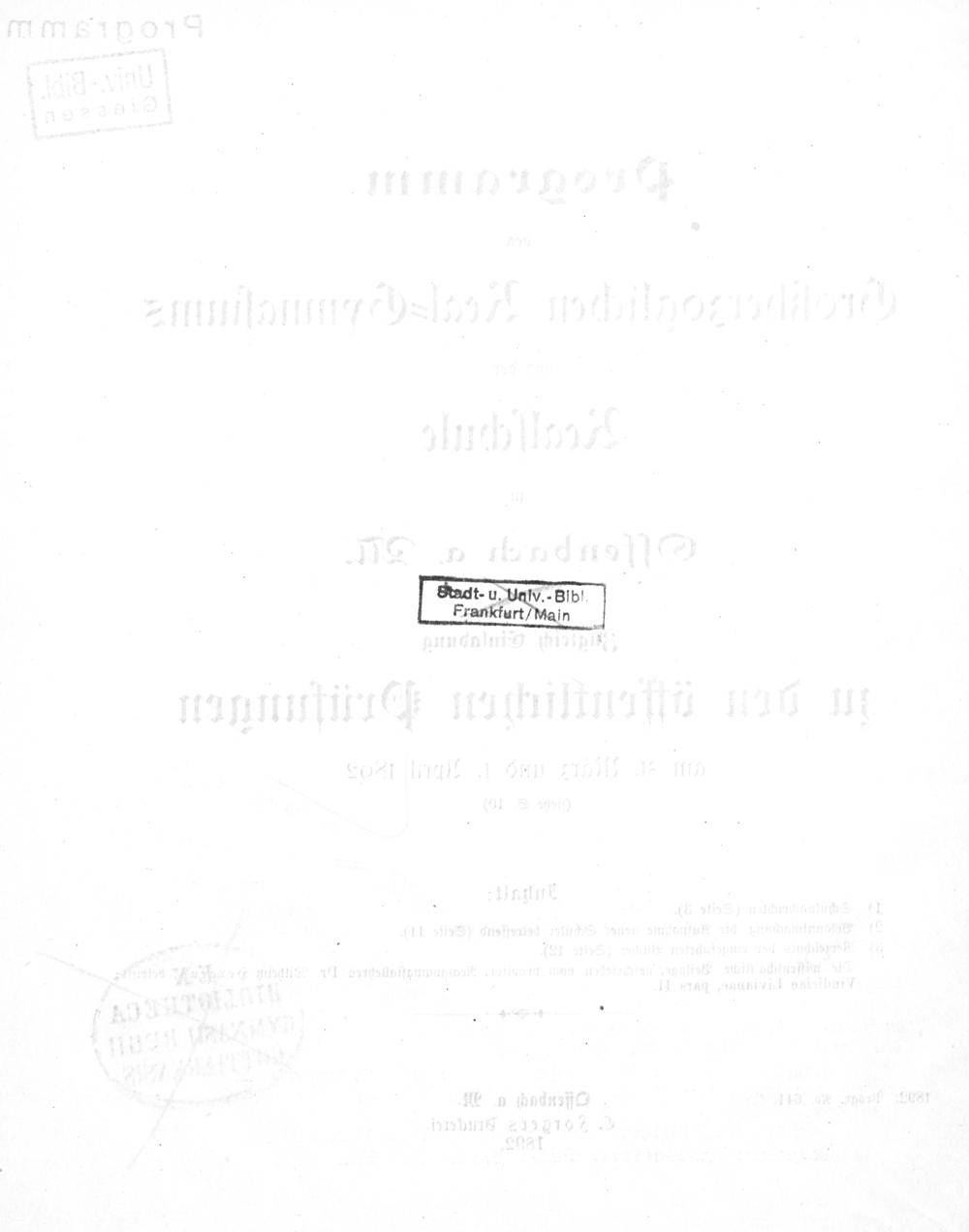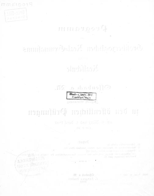 Programm des Grossherzoglichen Realgymnasiums und der Realschule zu Offenbach a. M.