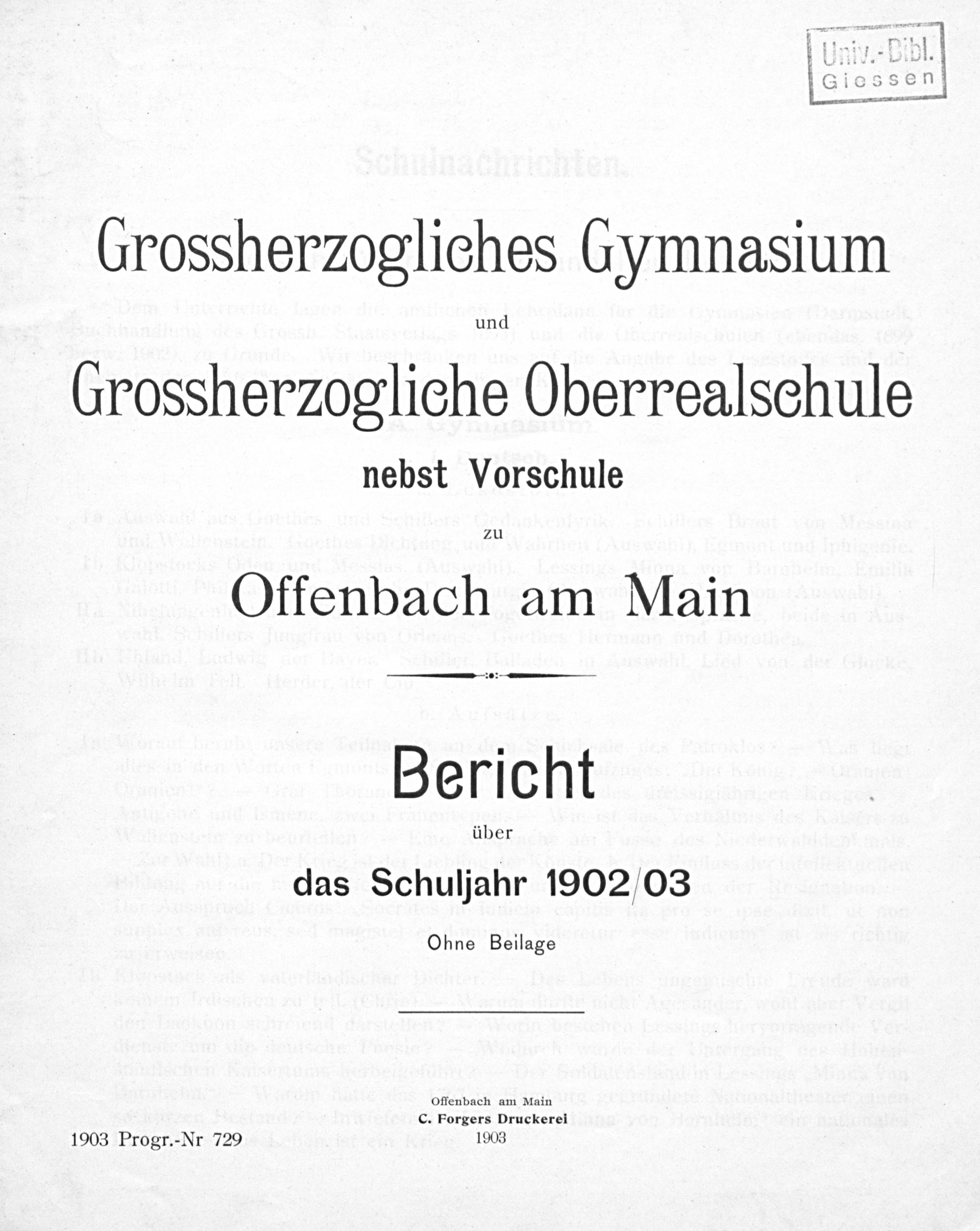das Schuljahr 1902/03
