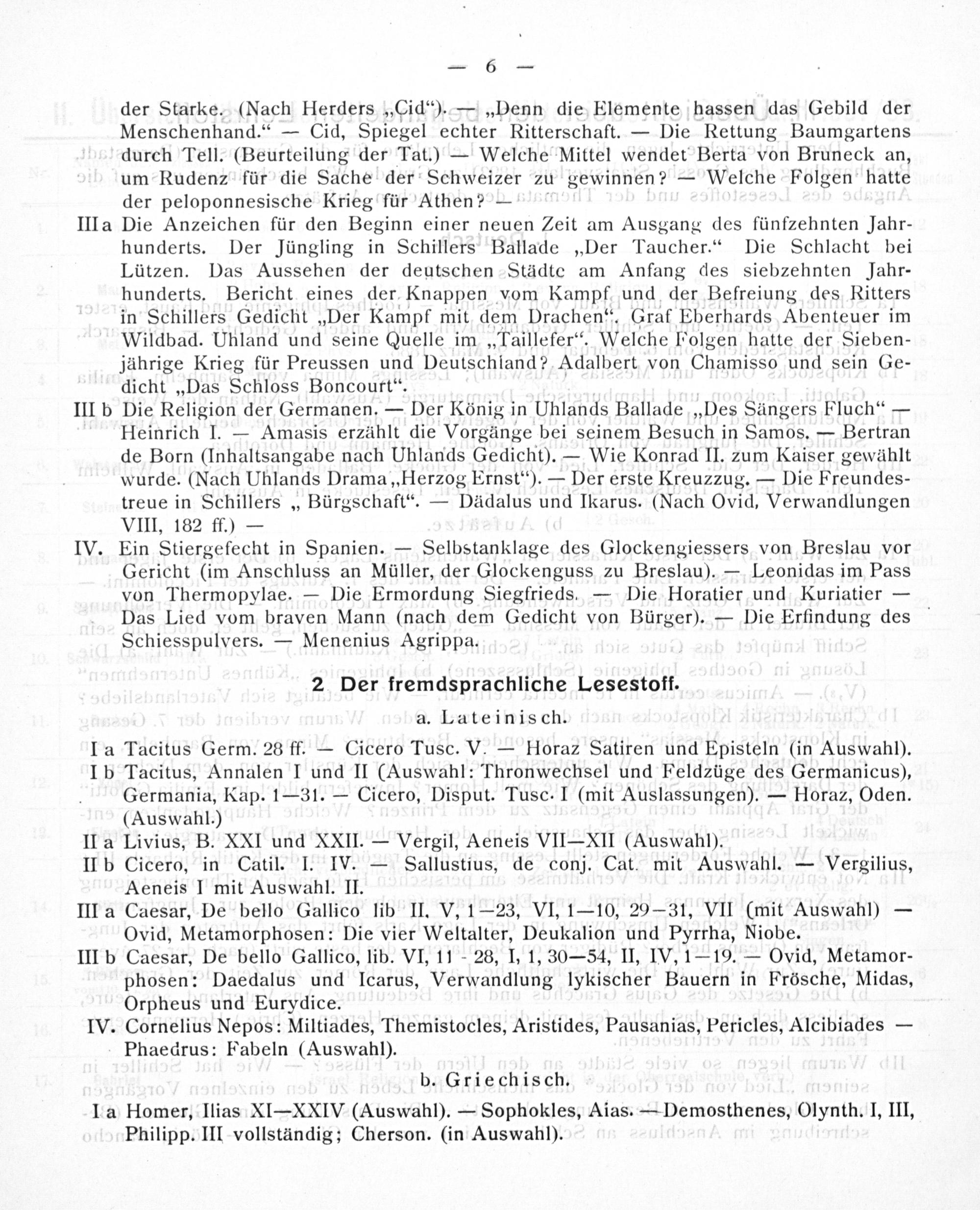 II a Livius, B. XXI und XXII.— Vergil, Aeneis VII— XII(Auswahl). IIb Cicero, in Catil. I. IV.— Sallustius, de conj. Cat. mit Auswahl.— Vergilius,