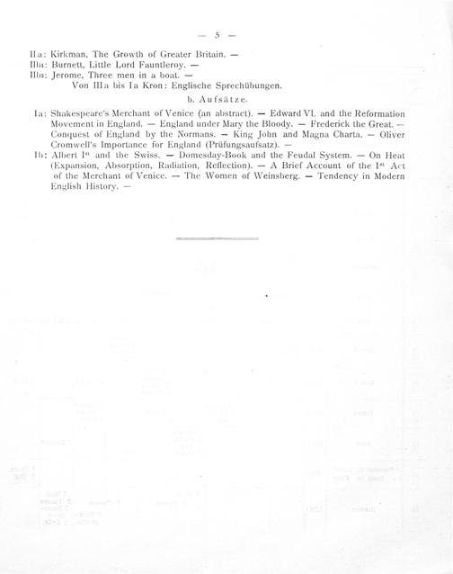 Von IIIa bis Ia Kron: Englische Sprechübungen. b. Aufsätze.
