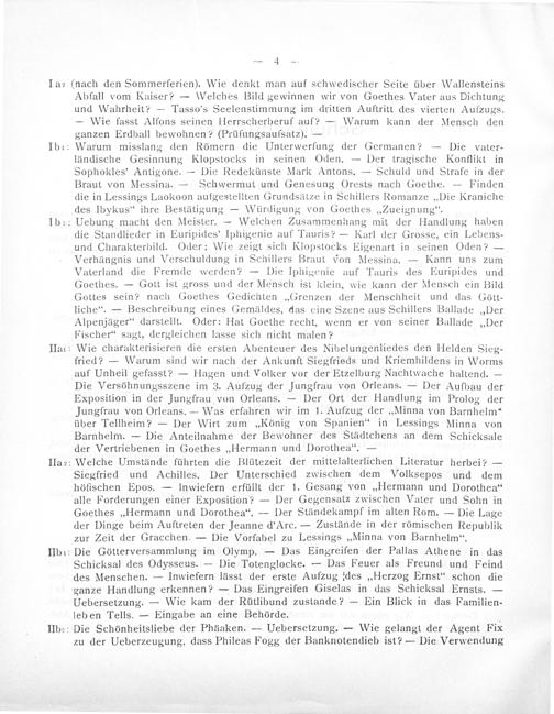 des Menschen.— Inwiefern lässt der erste Aufzug ides„Herzog Ernst“ schon die ganze Handlung erkennen?— Das Eingreifen Giselas in das Schicksal Ernsts.— Uebersetzung.— Wie kam der Rütlibund zustande?— Ein Blick in das Familien- leben Tells.— Eingabe an eine Behörde. Die Schönheitsliebe der Phäaken.— Uebersetzung.— Wie gelangt der Agent Fix zu der Ueberzeugung, dass Phileas Fogg der Banknotendieb ist?— Die Verwendung