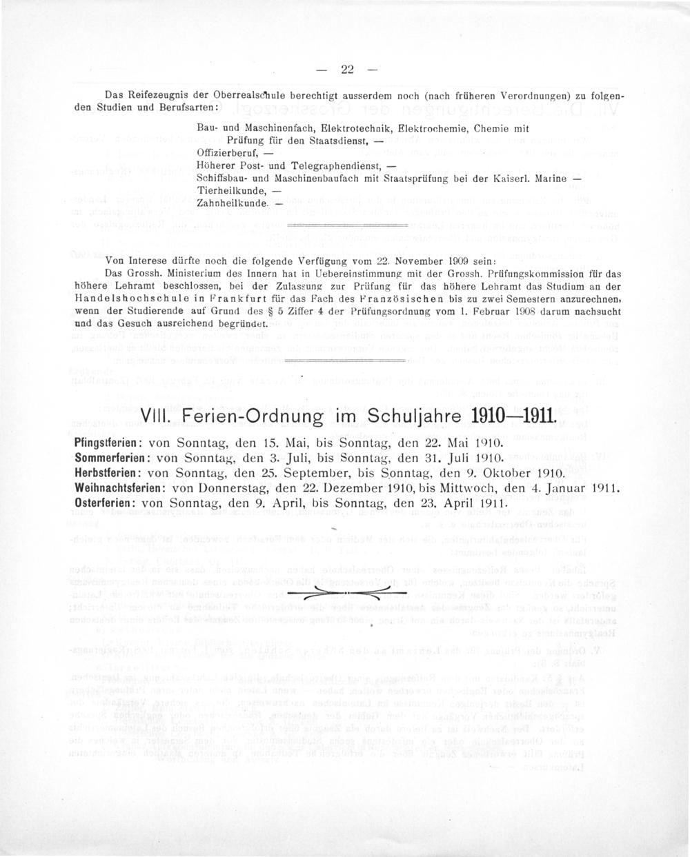 VIII. Ferien-Ordnung im Schuljahre 1910— 1911.