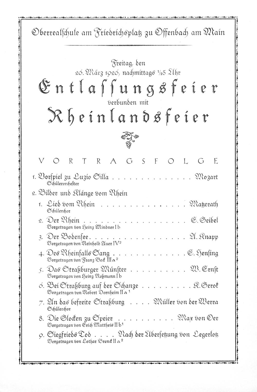 VO R T RAG S FE O L G E 1. Vorſpiel zu Quzio Silla.............. Mozart Schülerorcheſter s. Bilder und Klänge vom Rhein