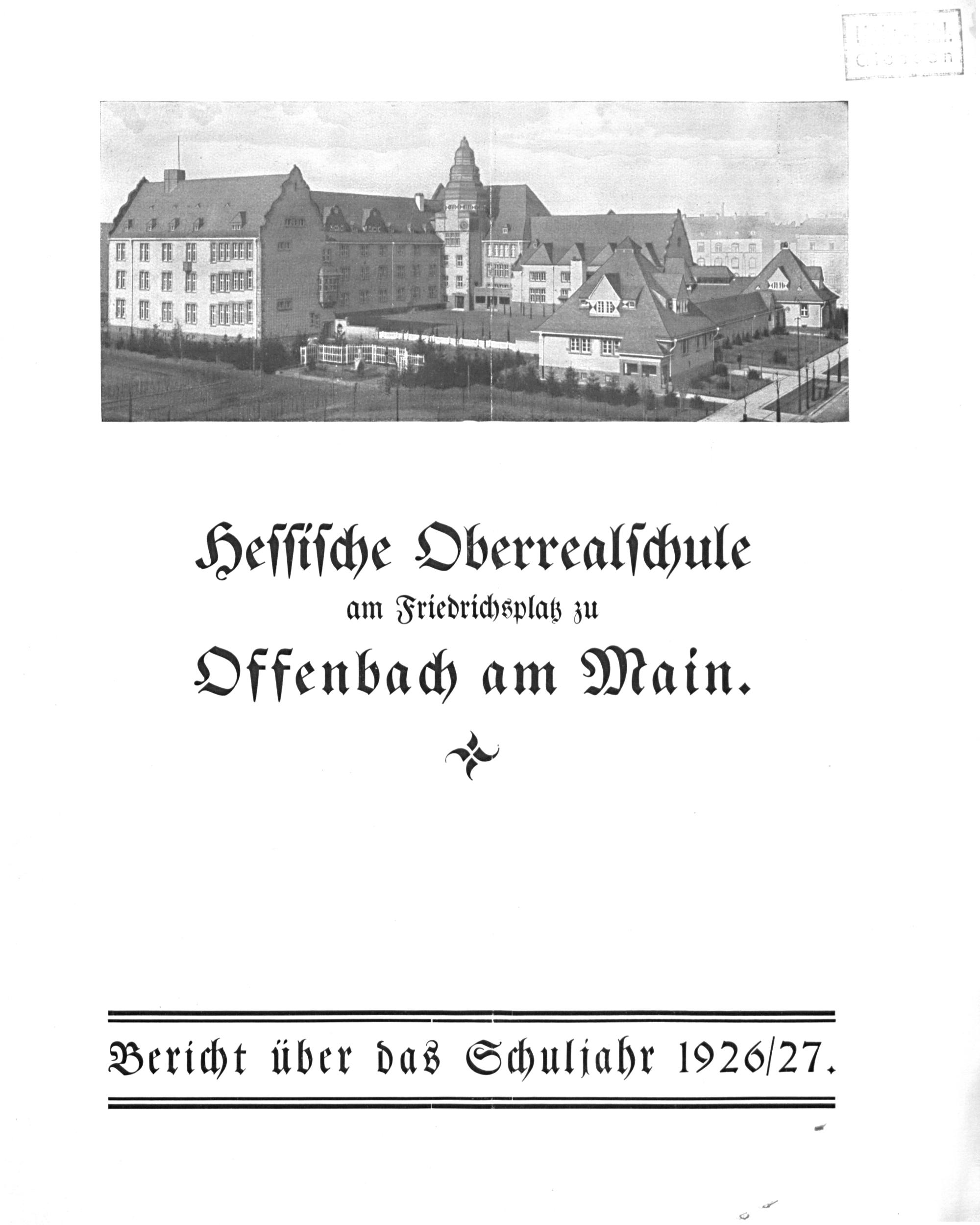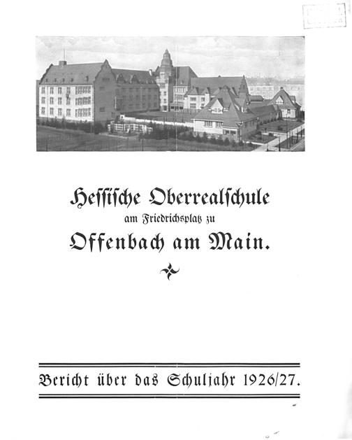 Heſſiſche Oberrealſchule am Friedrichsplatz zu Offenbach am Main. e Bericht über das Schuljahr 1926/27. —