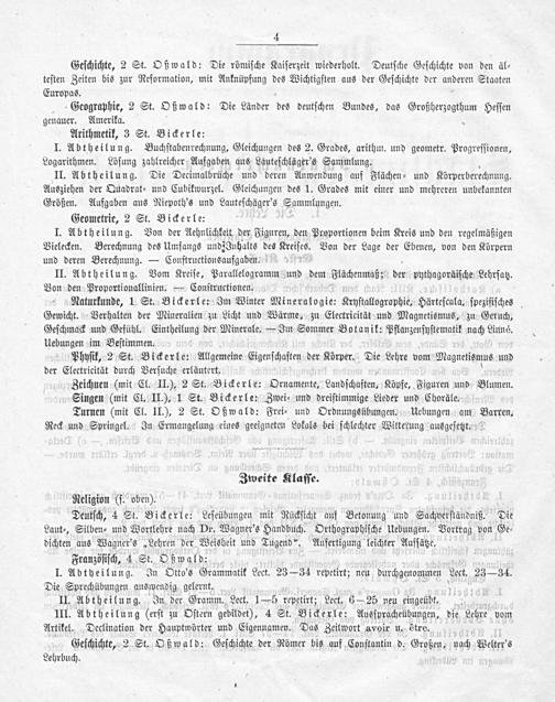 Geſchichte, 2 St. Oßwald: Die römiſche Kaiſerzeit wiederholt. Deutſche Geſchichte von den äl⸗ teſten Zeiten bis zur Reformation, mit Anknüpfung des Wichtigſten aus der Geſchichte der anderen Staaten Europas. 1