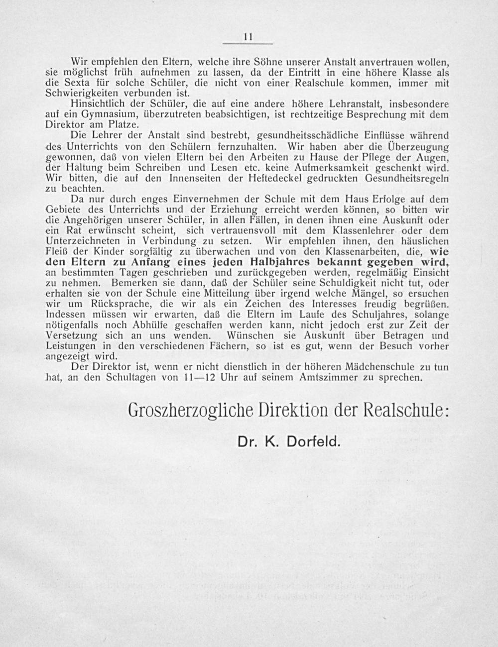 Groszherzogliche Direktion der Realschule: Dr. K. Dorfeld.