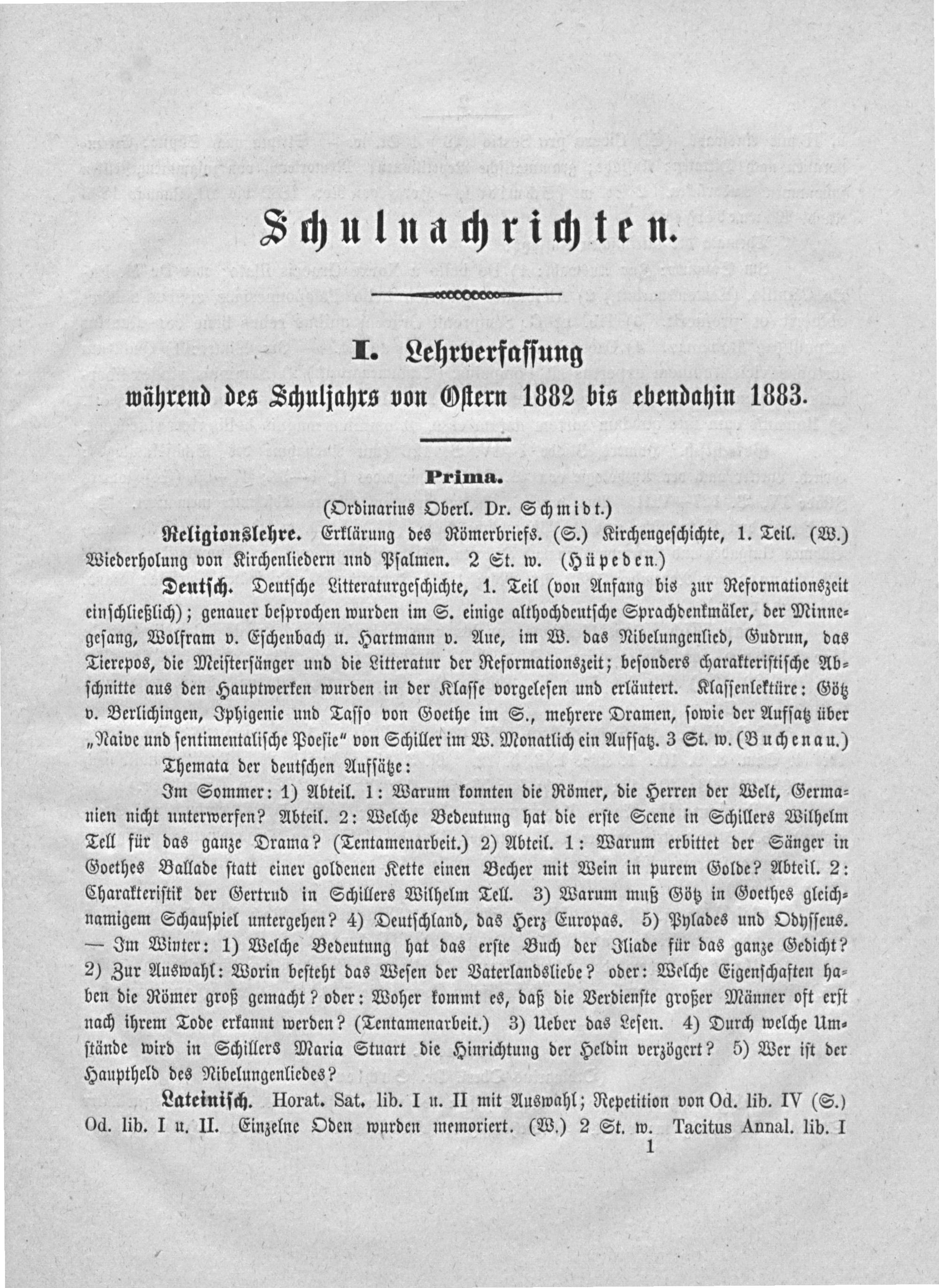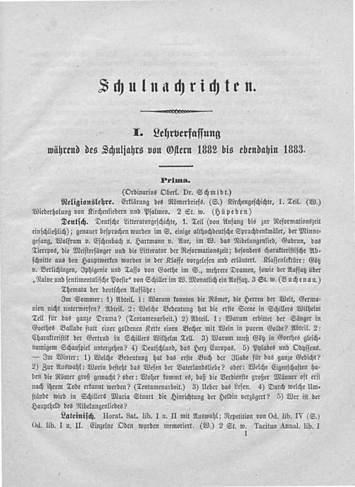 Lateiniſch. Horat. Sat. lib. I u. II mit Auswahl; Repetition von Od. lib. IV(S.) Od. lib. I u. II. Einzelne Oden wurden memoriert.(W.) 2 St. 3 Tacitus Annal. lib. I