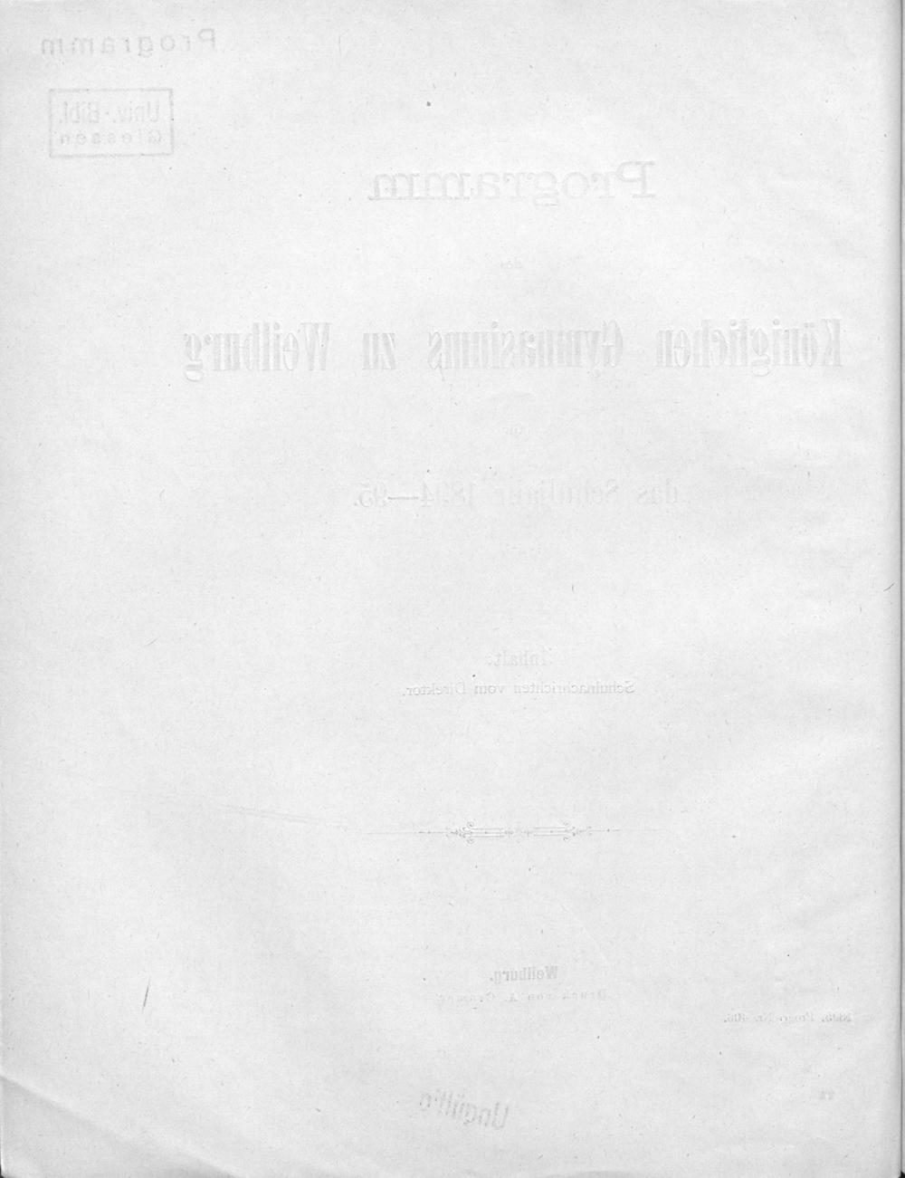 Programm des Königlichen Gymnasiums zu Weilburg