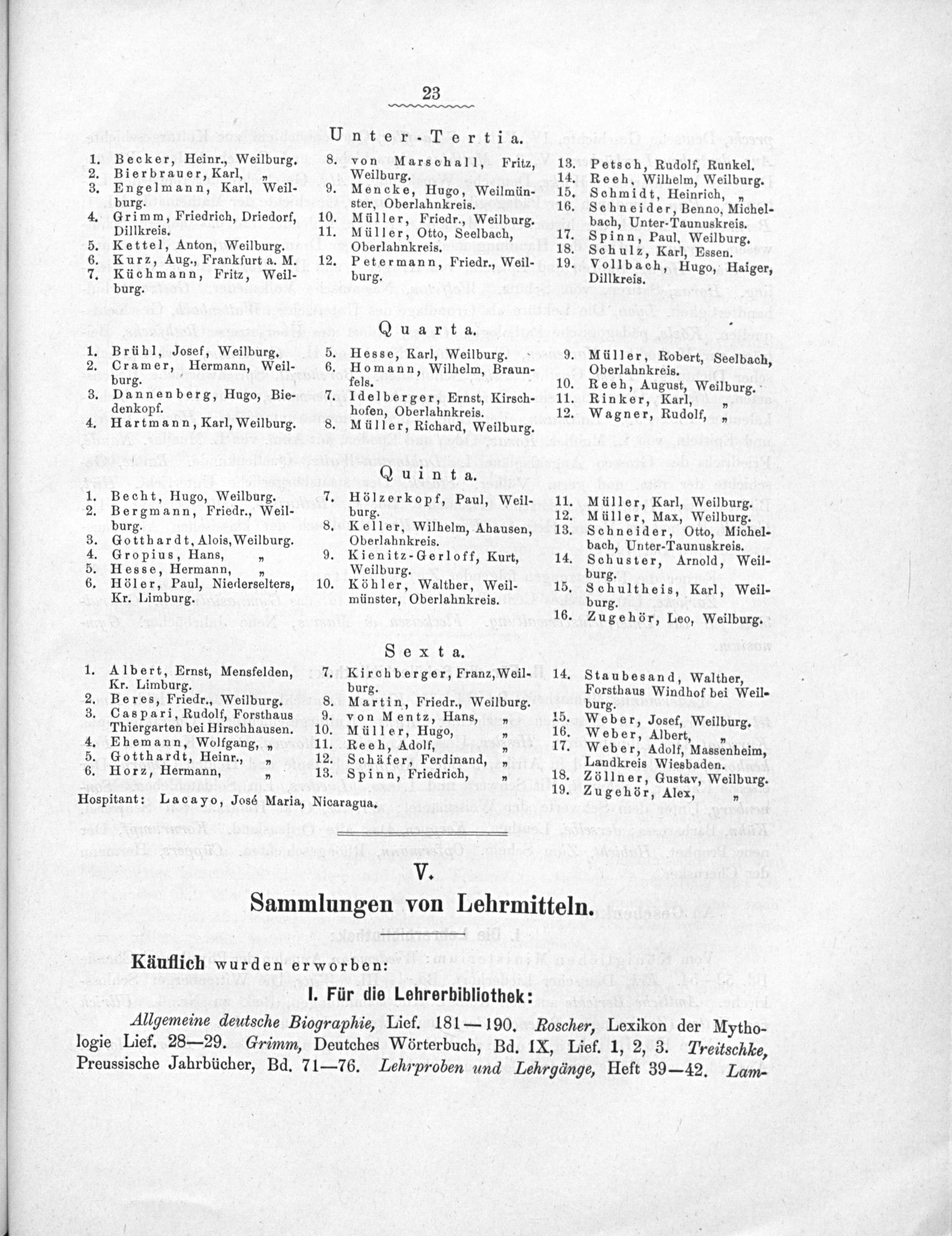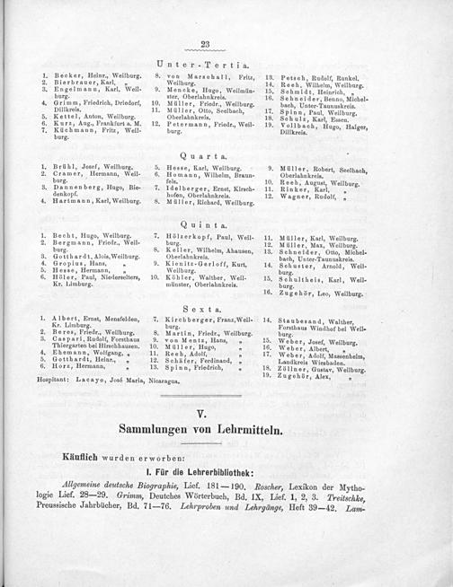 Martin, Friedr., Weilburg. von Mentz, Hans,„ Müller, Hugo, Receh, Adolf, Schäfer, Ferdinand, Spinn, Friedrich,