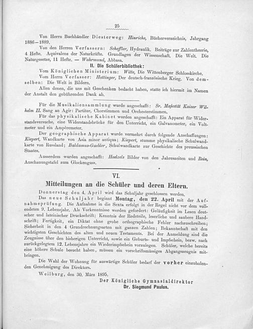 Der Königliche Gymnasialdirektor Dr. Siegmund Paulus.