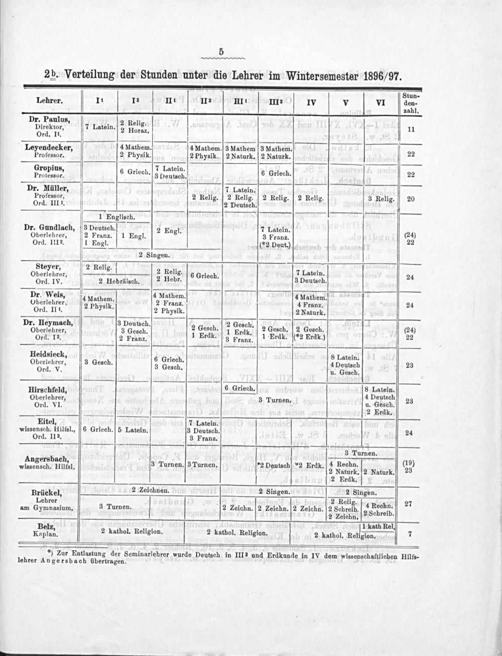 2 b. Verteilung der Stunden unter die Lehrer im Wintersemester 1896/97.