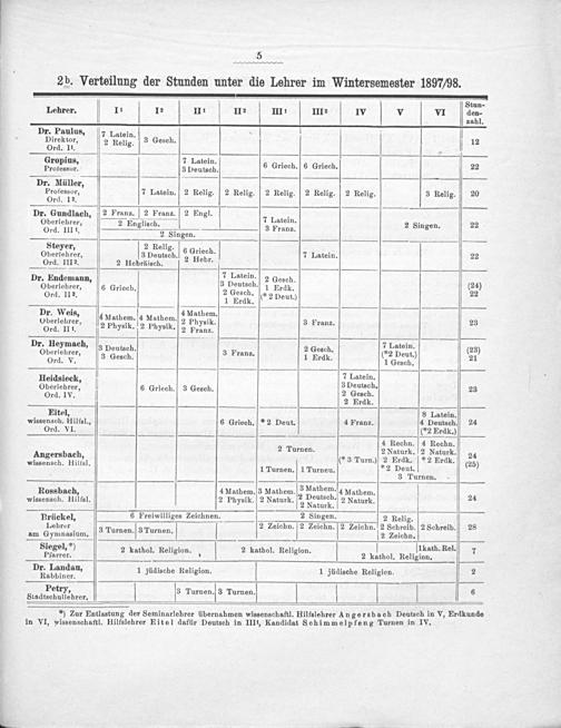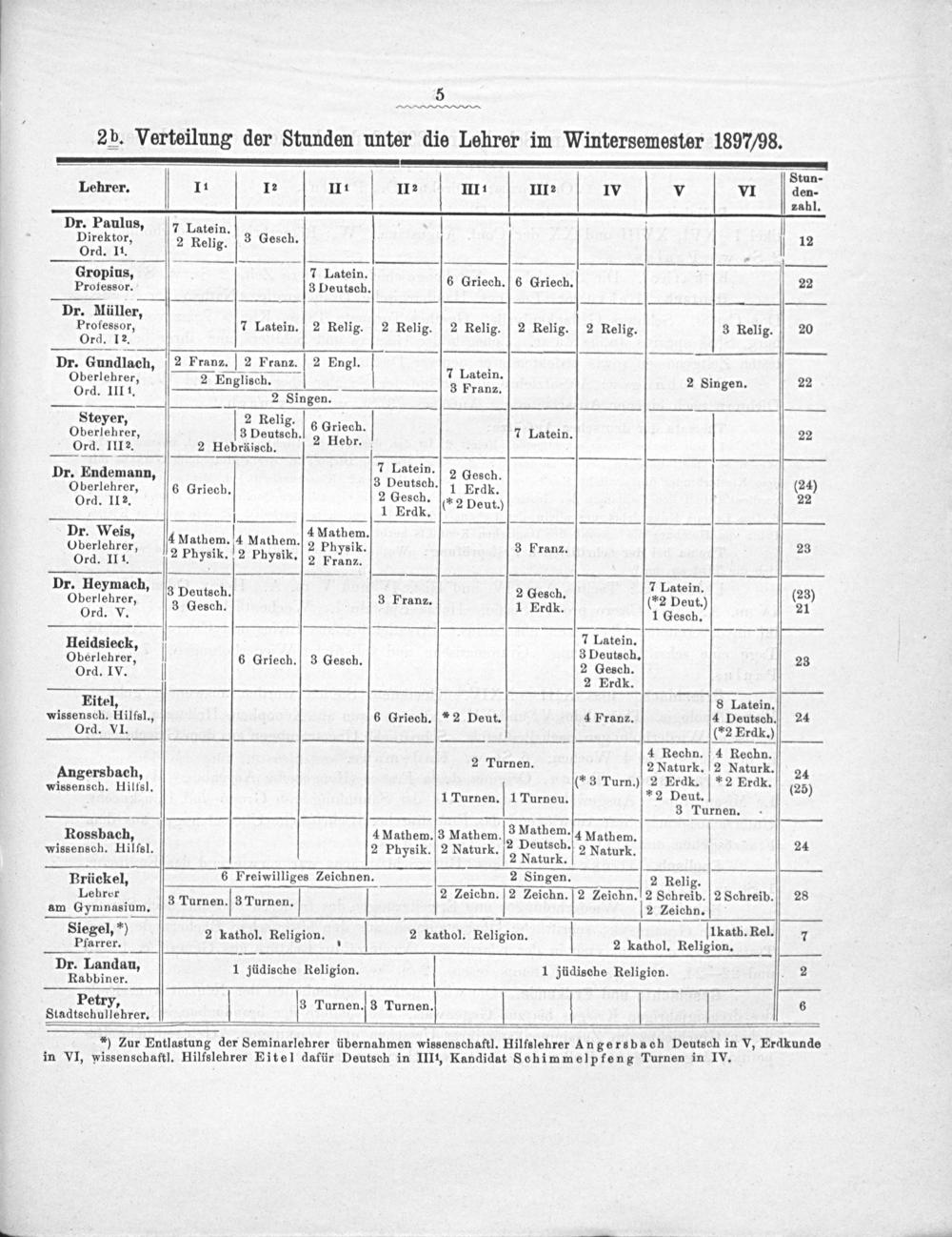 2 b. Verteilung der Stunden unter die Lehrer im Wintersemester 1897/98