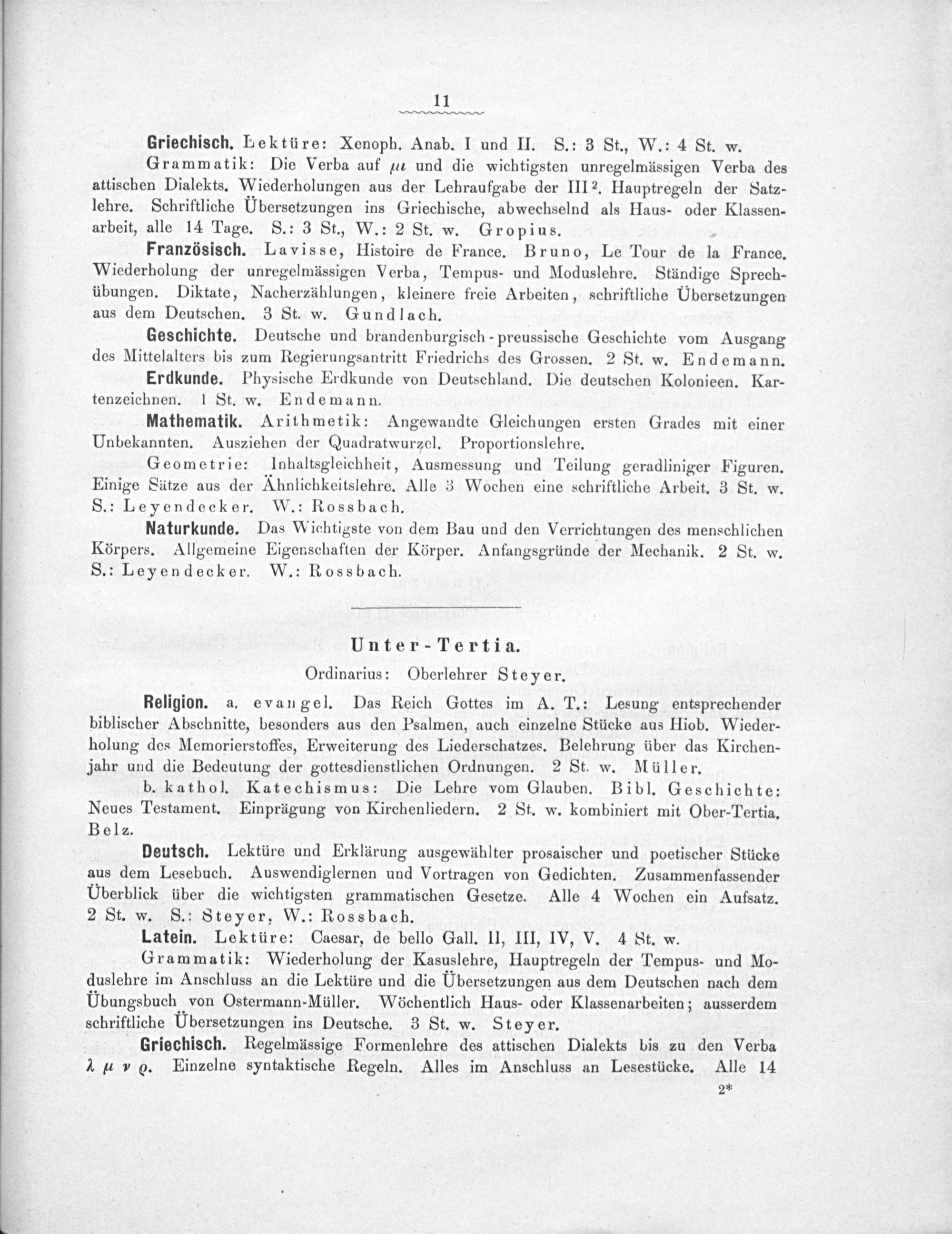 Unter-Tertia. Ordinarius: Oberlehrer Steyer.
