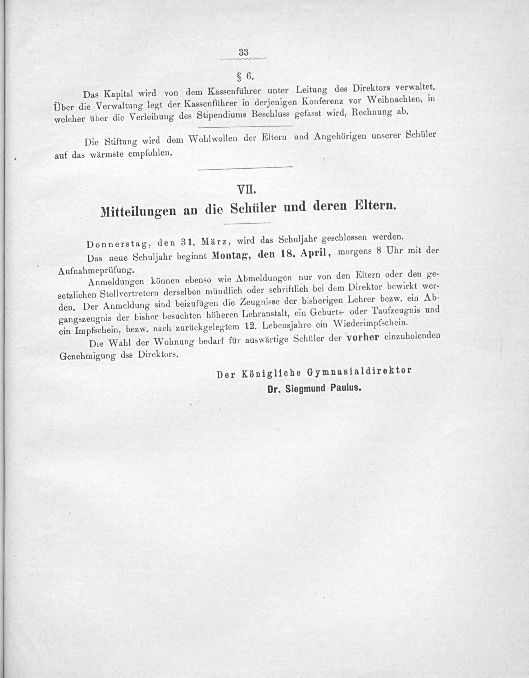 Der Königliche Gymnasialdirektor Dr. Siegmund Paulus.