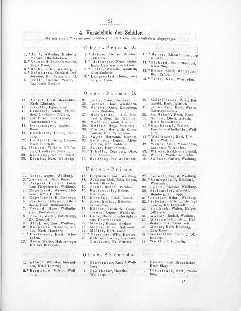 4. Verzeichnis der Schüler.