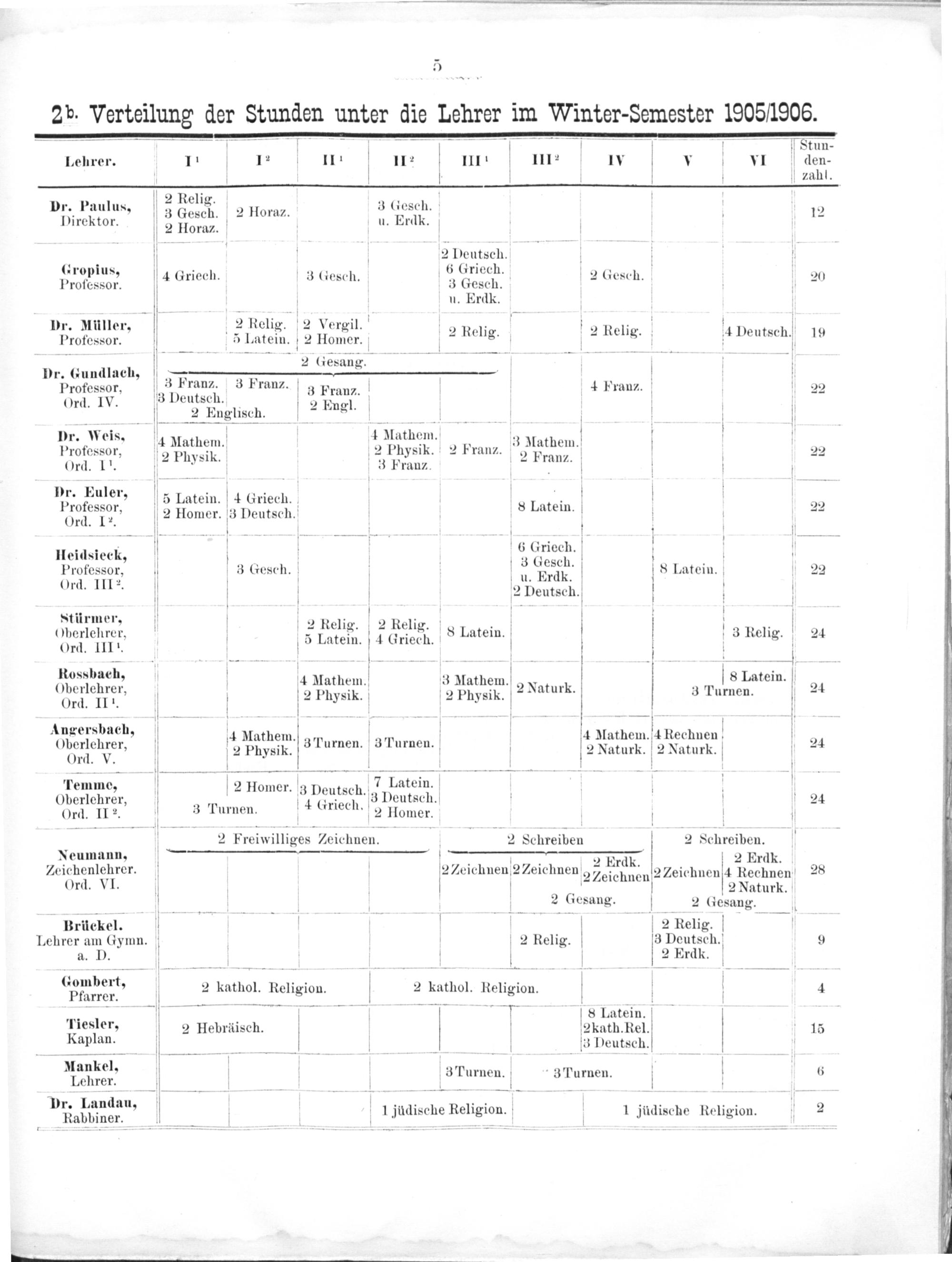 ſ Stun- Lehrer. I¹ 1² II“ V II* 1 III’ III: IV V VI den- zahl. ſ? 5 Dr. Paulus, G 3 Relig. 2 Hora⸗z 3 Gesch. 12 Direktor. 2 Horaz.* u. Erdk.— ——— 1— 9 2 Deutsch. Gropius 3 Gast 6 Griech. 2 Gesch. Gr Professor. 4 Griech 3 Gosel. 3 Gesch. 2 Gesch. 20 u. Erdk. unner. 2 Relig. 2 Vergil. Dalse un. nne, mauß, 2e ewa. ſekaG. hewernn us Ssor.— Aanrene n 110mer.. 1 A 1 8 2(iesang.